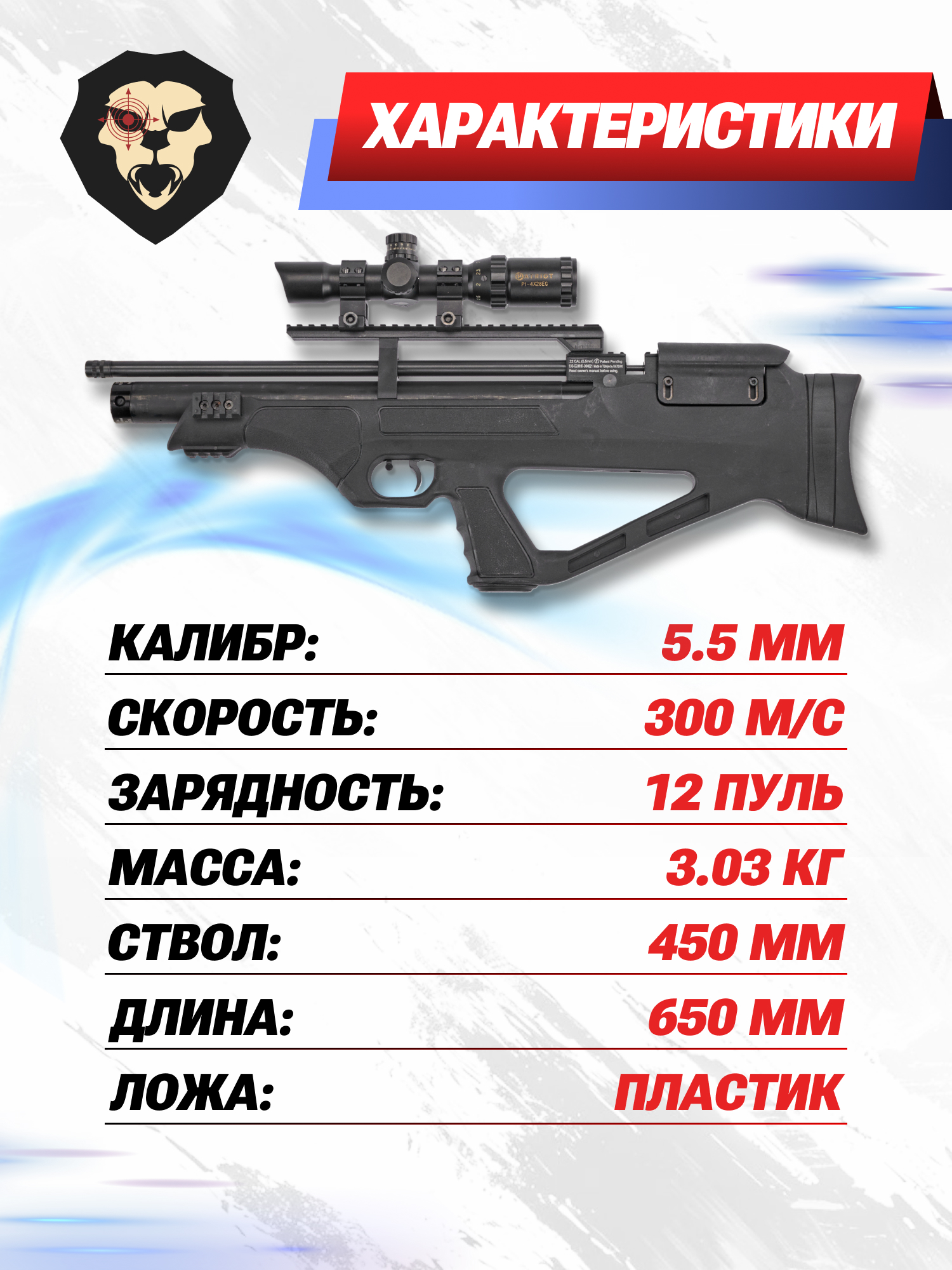 | Комплектация | Винтовка, магазин, заправочный штуцер, упаковка, краткая документация, копия сертификата (по запросу покупателя) |