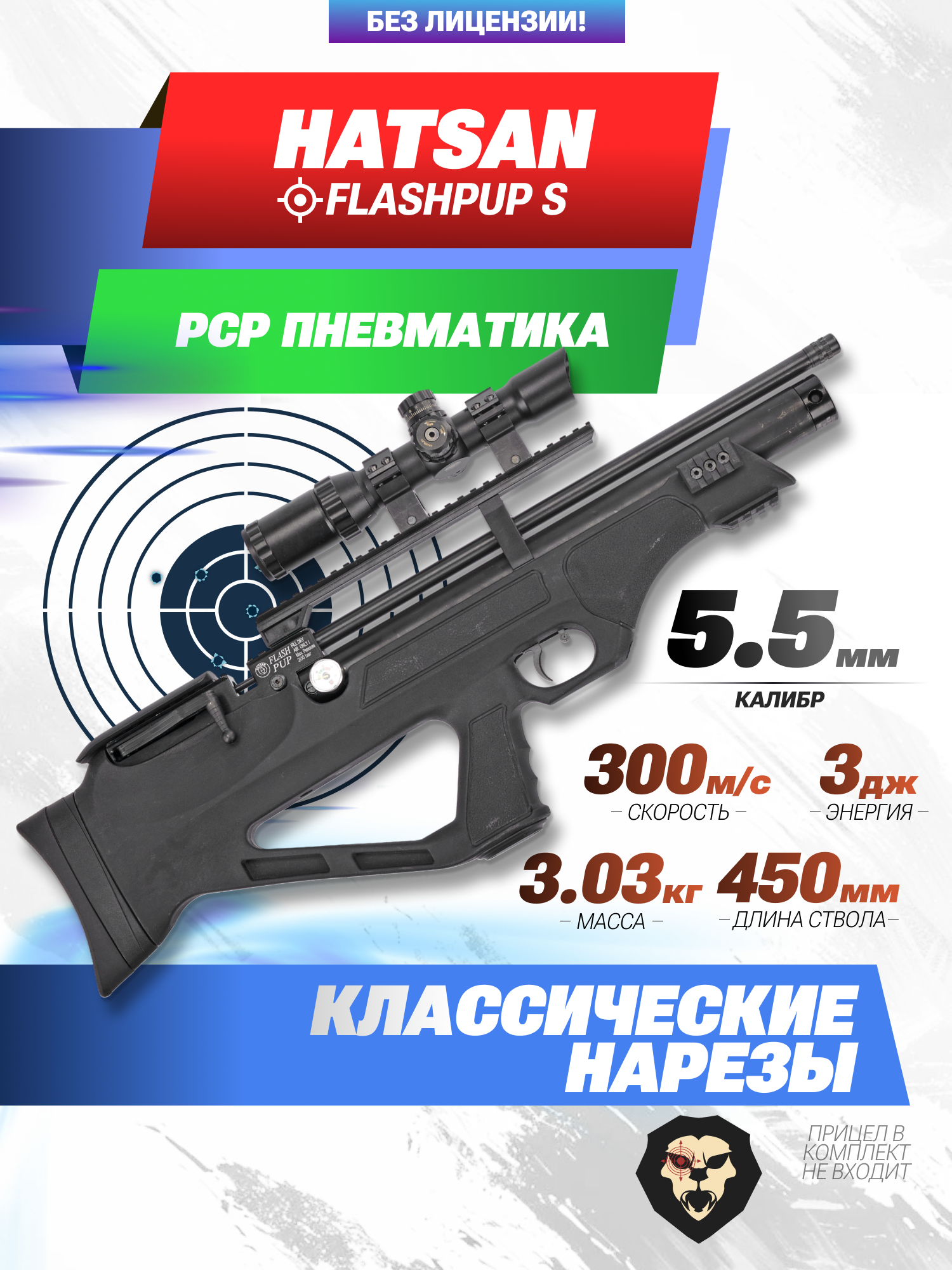 Информация о товаре "Пневматическая винтовка Hatsan Flashpup S 5.5 мм (PCP, пластик)" носит ознакомительный характер, и не является публичной офертой, определяемой положениями Статьи 437 Гражданского кодекса Российской Федерации, характеристики, внешний вид, цвет и комплектация могут быть изменены производителем без уведомления.