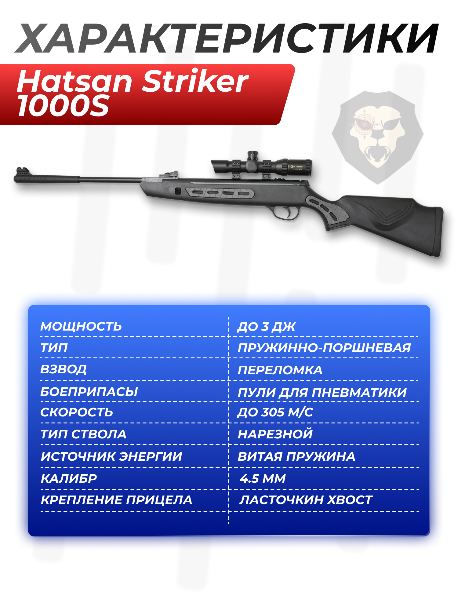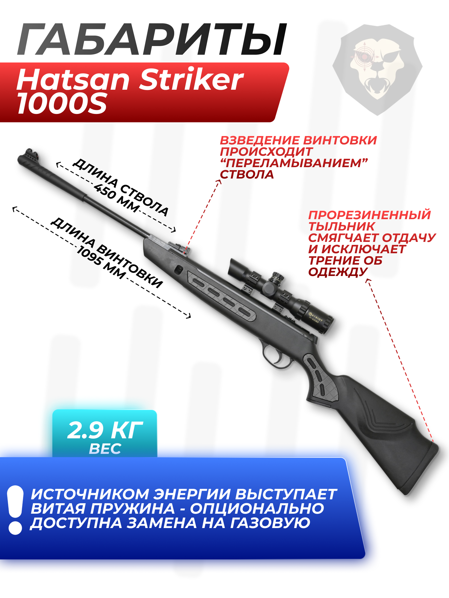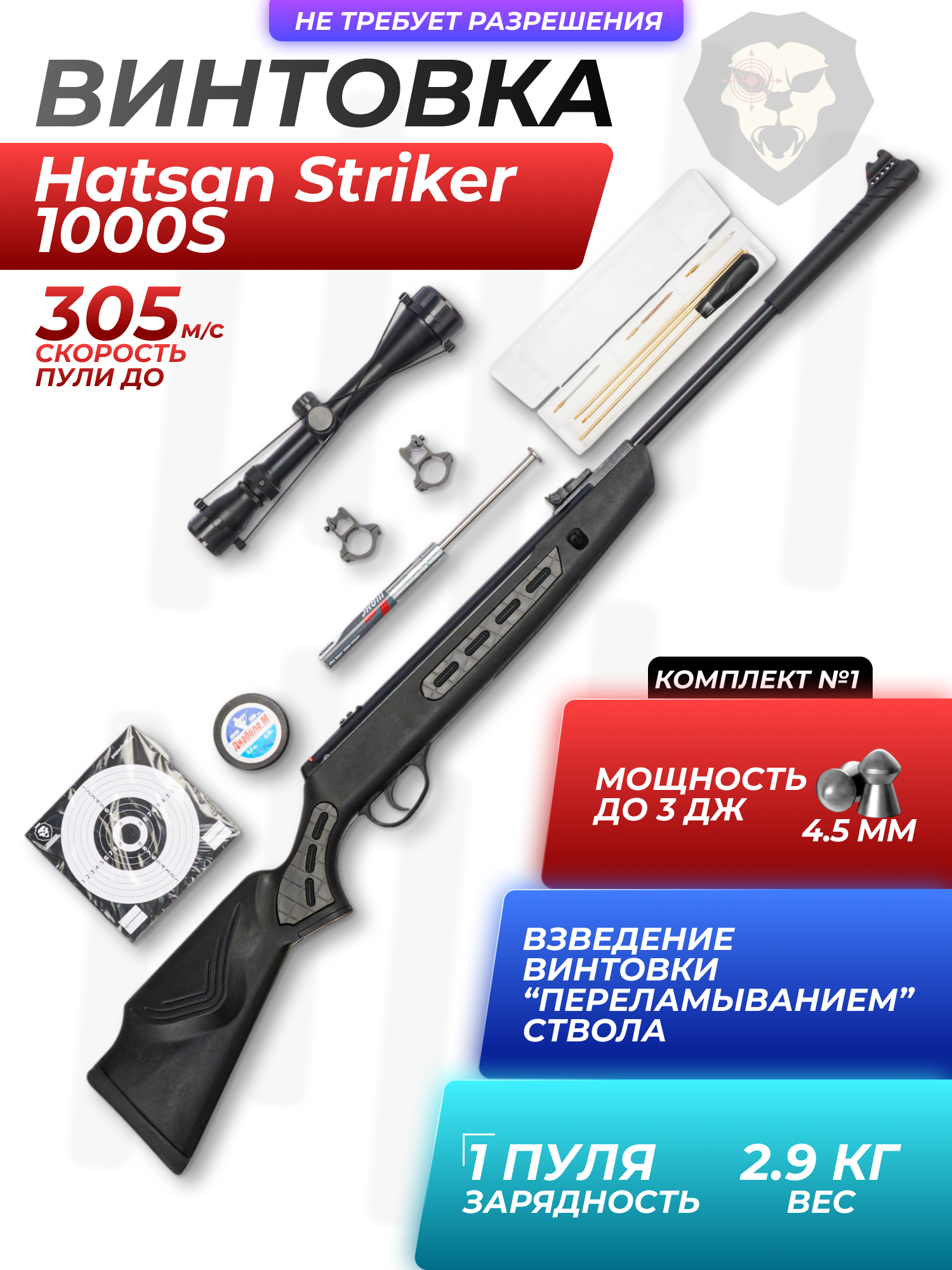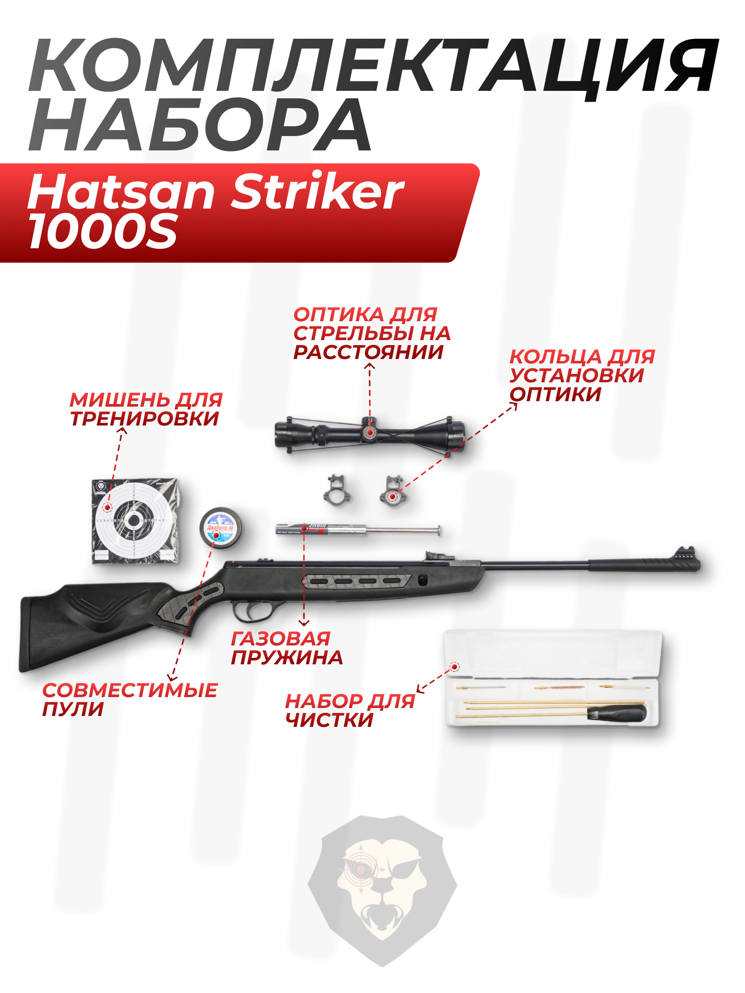 Пневматическая винтовка Hatsan Striker 1000S 4.5 мм комплект Hunter №1 (прицел, кольца, газовая пружина, мишени, пули, набор для чистки, 3 Дж) купить в интернет-магазине Popadiv10.