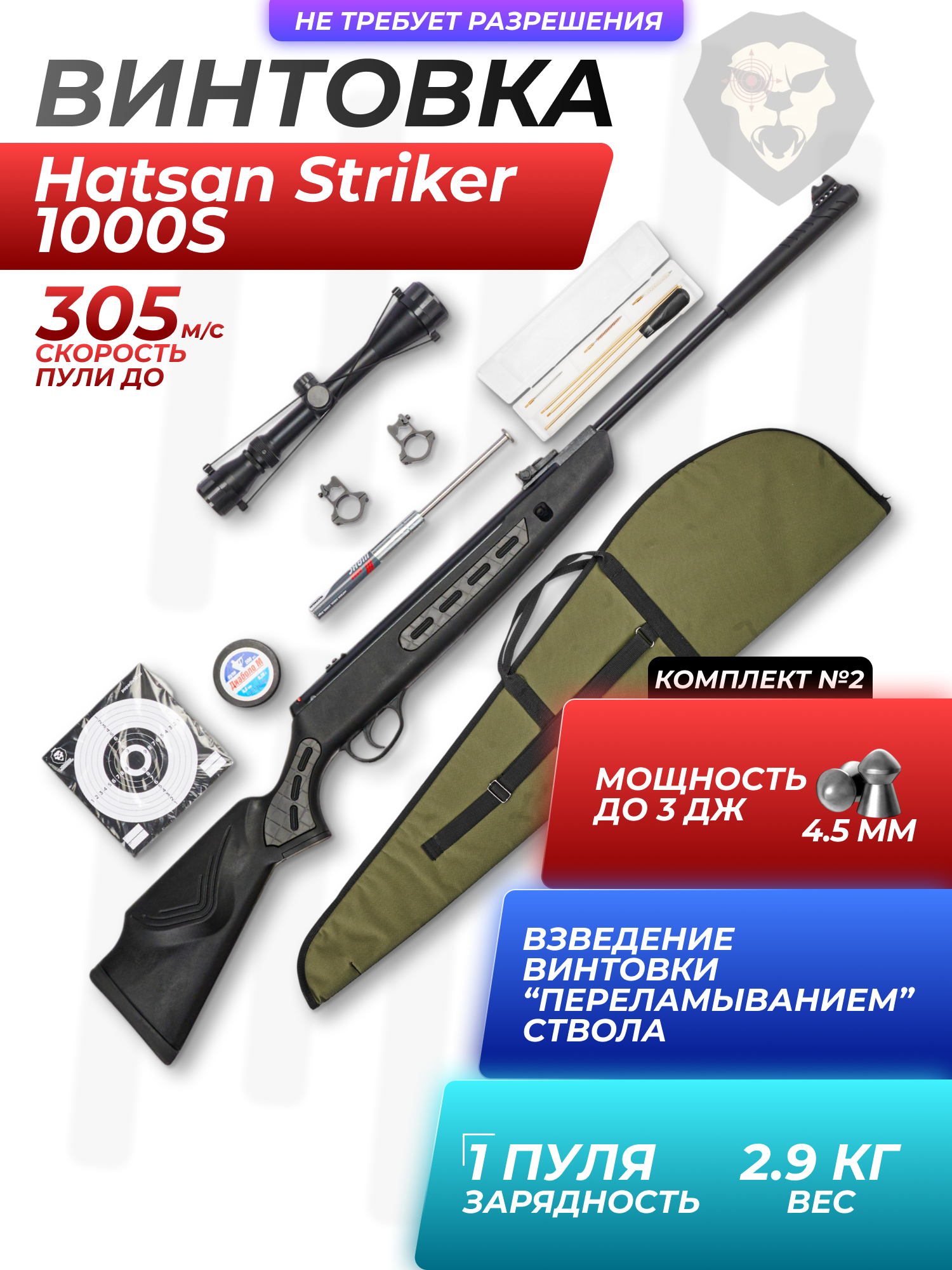 Пневматическая винтовка Hatsan Striker 1000S комплект Hunter №2 (прицел, кольца, газовая пружина, чехол, мишени, пули, набор для чистки, 3 Дж, 4.5 мм) купить в интернет-магазине Popadiv10.