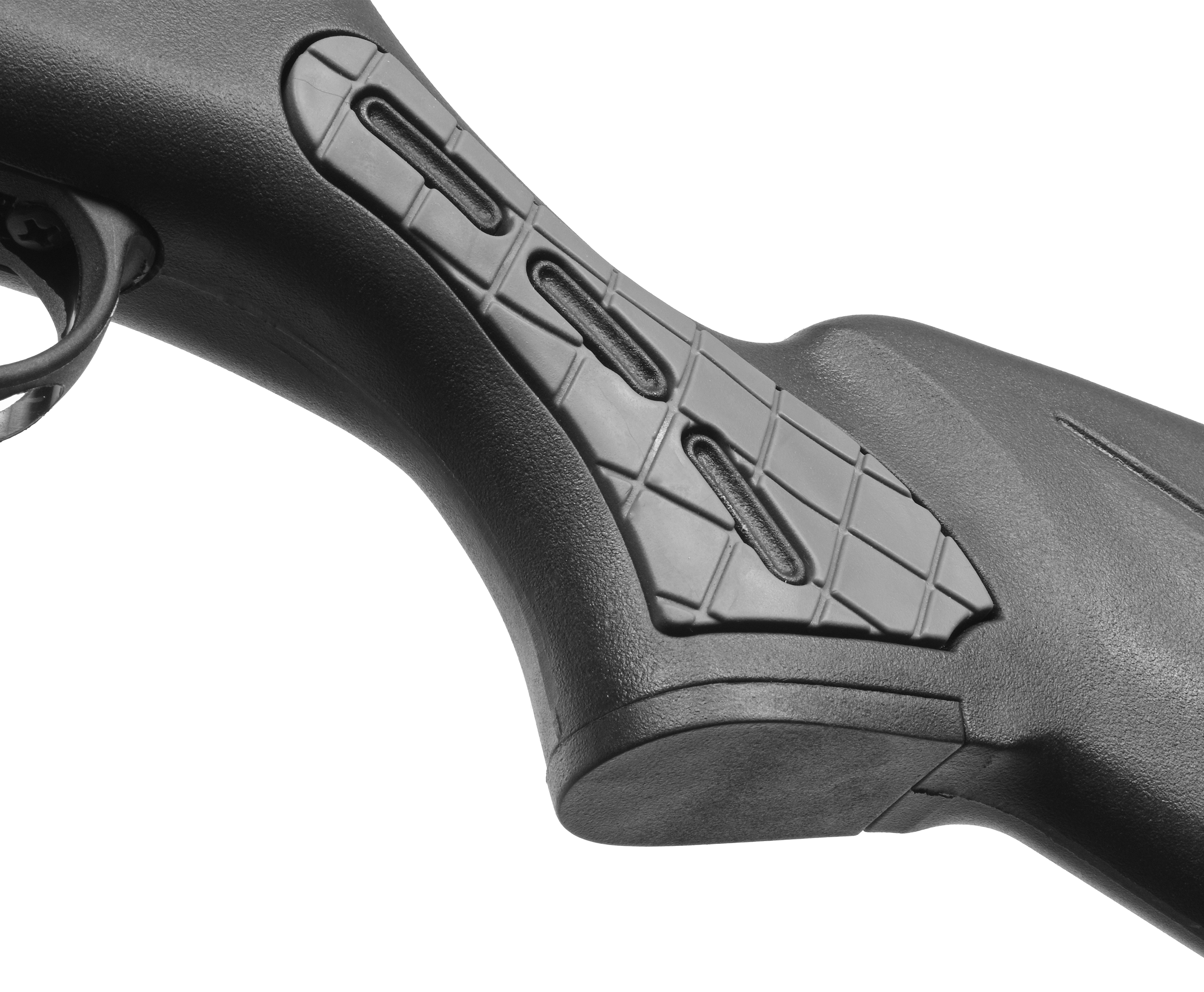 Форм-фактор фурнитуры Хатсан классический, но при этом она стала комфортнее иных моделей. Во многом этому поспособствовала замена классических противоскользящих насечек на полноценные вставки. На прикладе присутствует традиционный тыльник, а также возвышение под щеку - оно помогает вынести глаз на линию прицеливания.