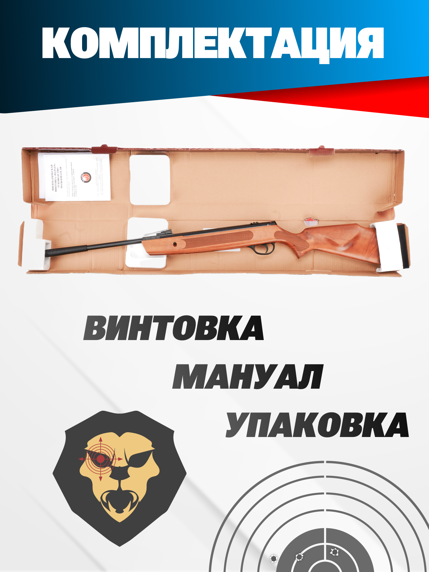 | Комплектация | Винтовка, упаковка, краткая документация, копия сертификата (по запросу покупателя) |