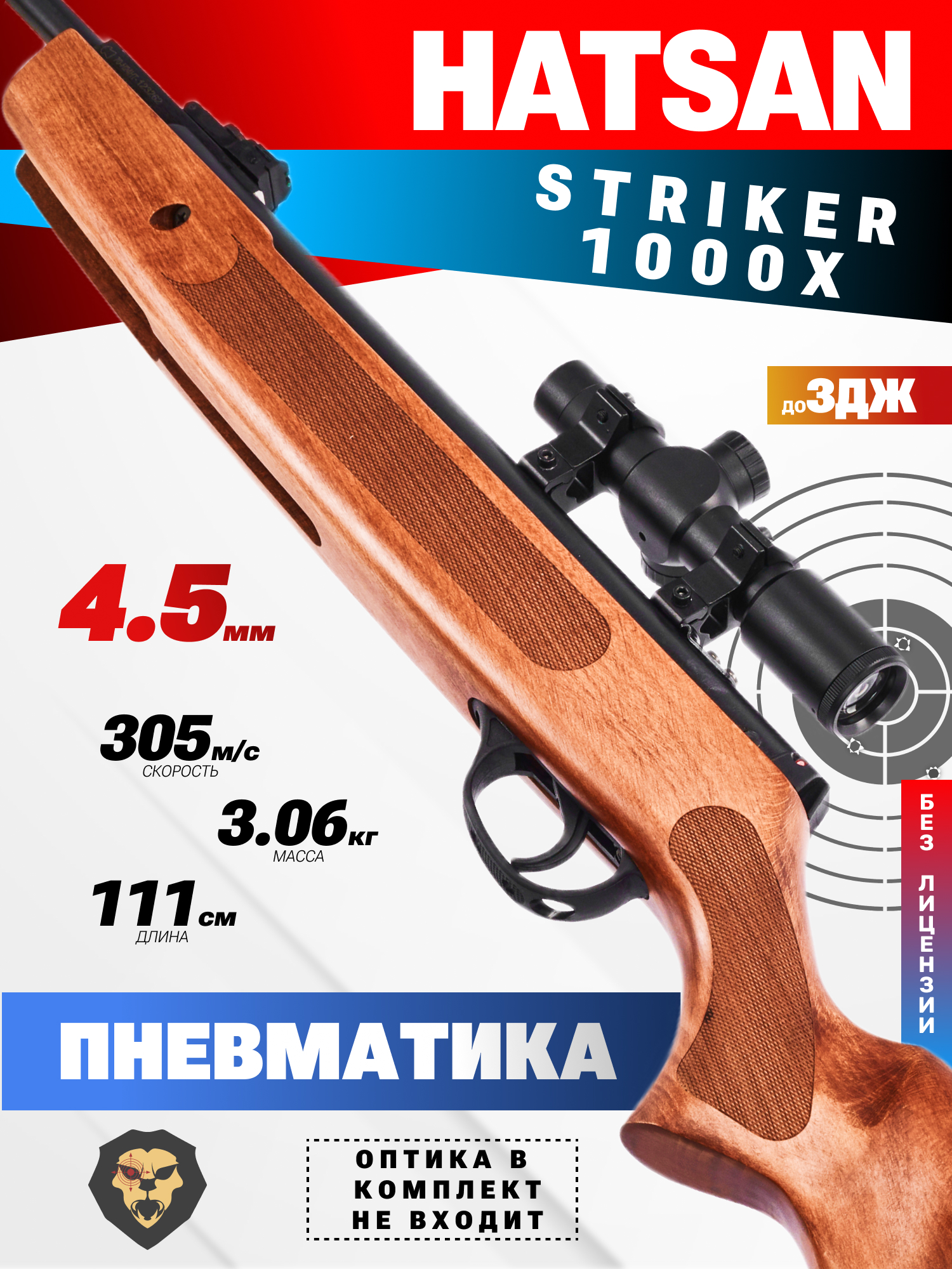 Информация о товаре "Пневматическая винтовка Hatsan Striker 1000X 4.5 мм (3 Дж, дерево)" носит ознакомительный характер, и не является публичной офертой, определяемой положениями Статьи 437 Гражданского кодекса Российской Федерации, характеристики, внешний вид, цвет и комплектация могут быть изменены производителем без уведомления.