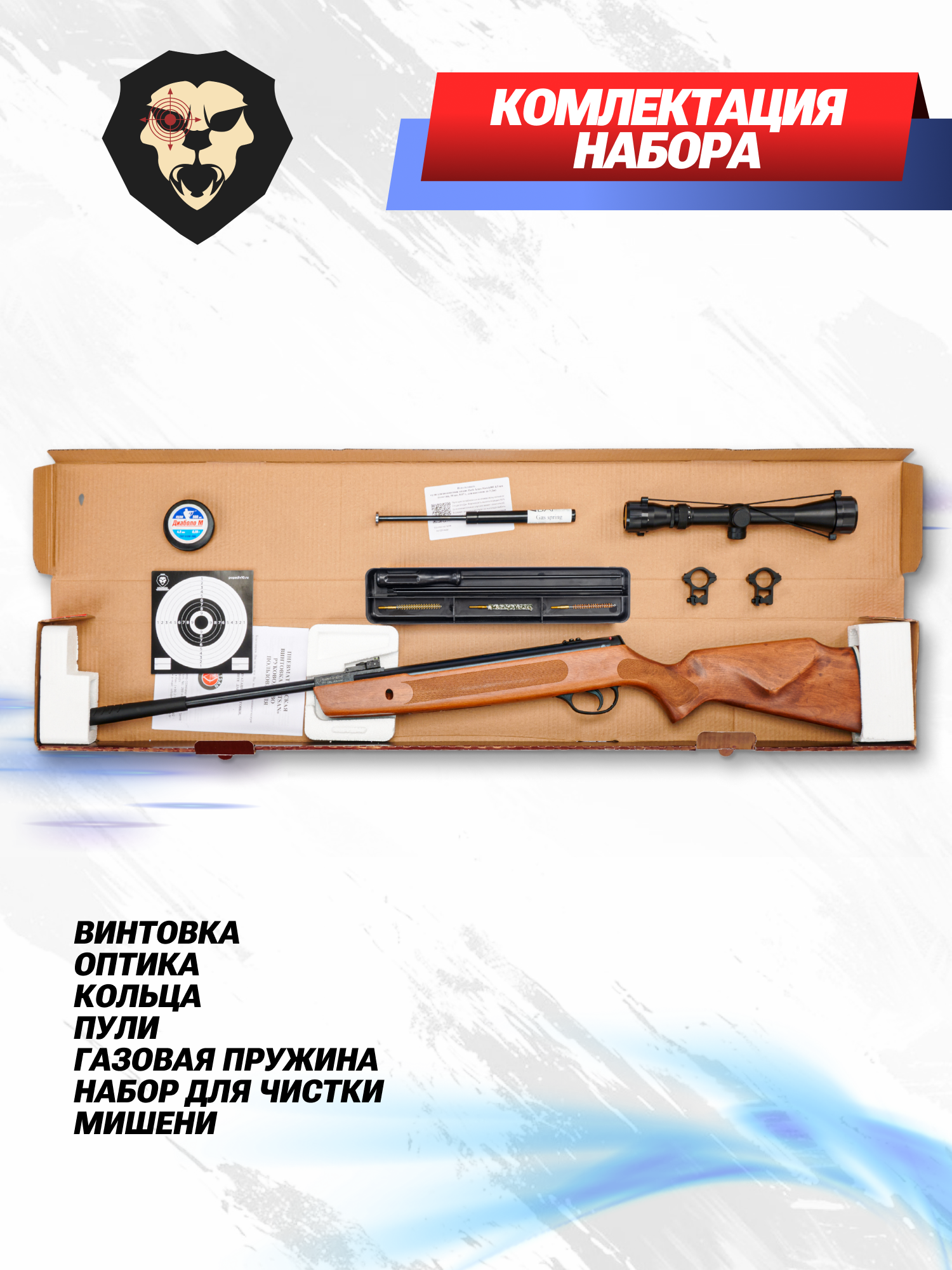 | Комплектация | Винтовка, прицел, кольца, газовая пружина, мишени, пули, набор для чистки, упаковка, краткая документация, копия сертификата (по запросу покупателя) |