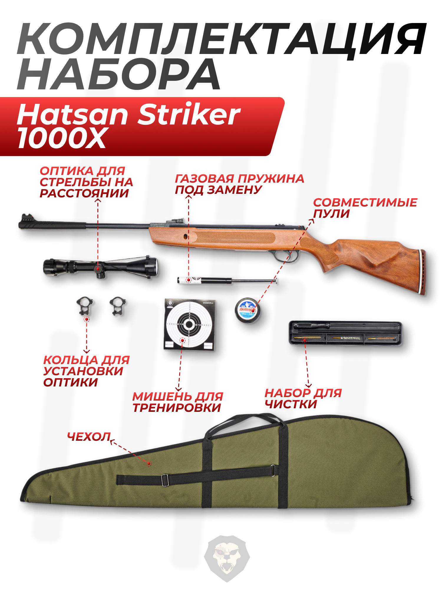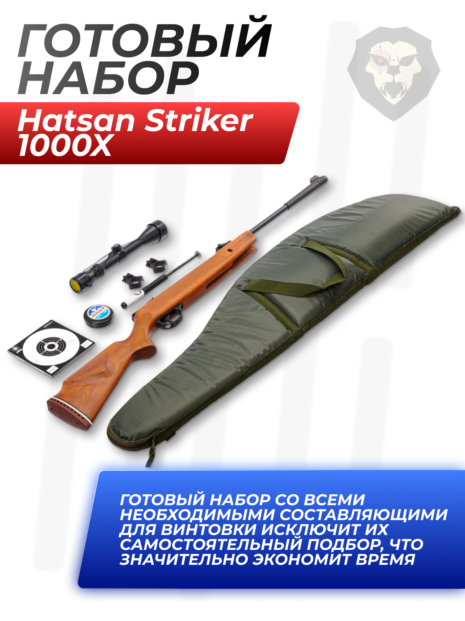 Пневматическая винтовка Hatsan Striker 1000X комплект Hunter №2 (прицел, кольца, газовая пружина, чехол, мишени, пули, набор для чистки, 3 Дж, 4.5 мм, дерево) купить в интернет-магазине Popadiv10.