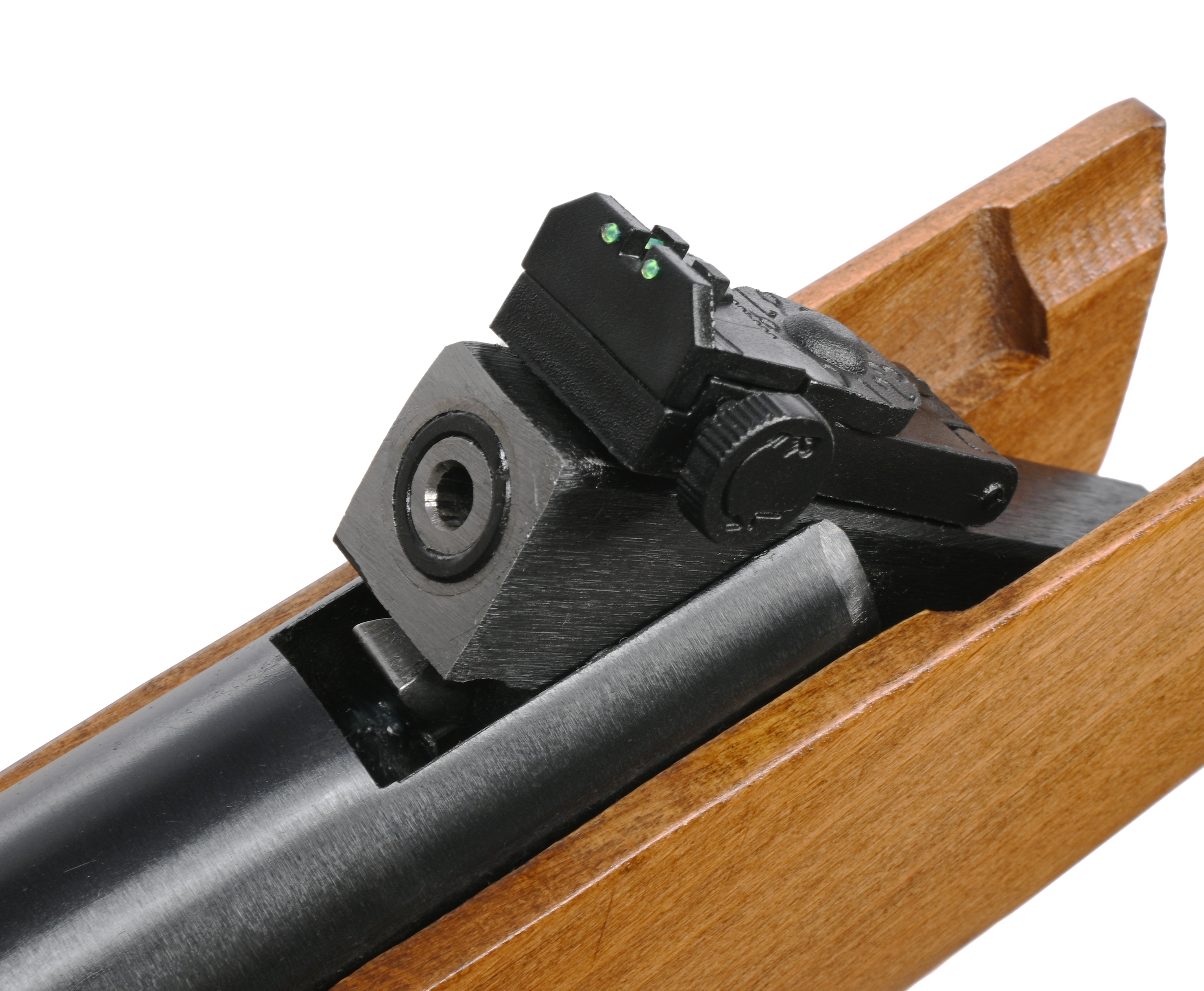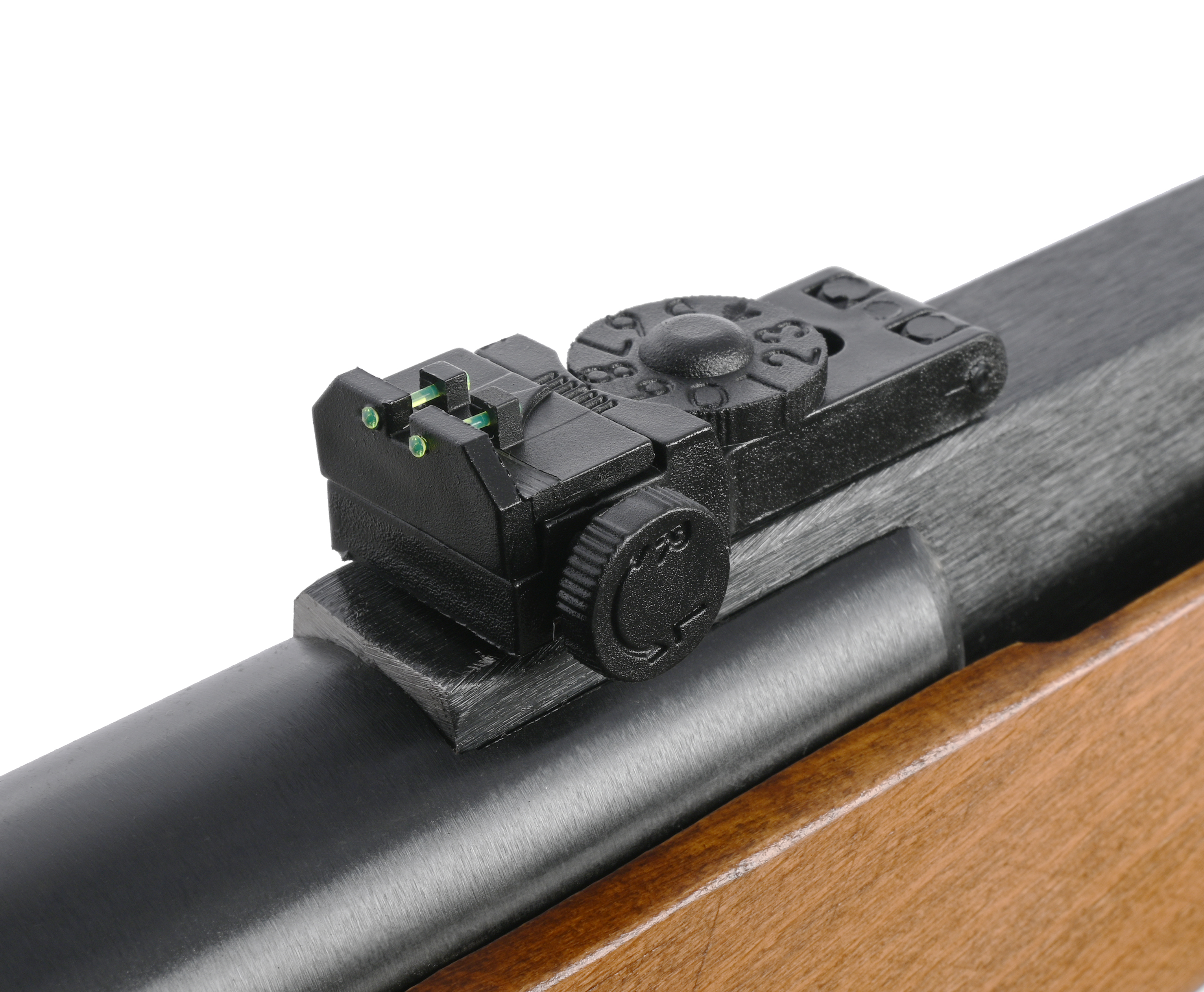 Изделием можно пользоваться и без оптики - винтовка Hatsan также позволит практиковаться в упражнениях из спортивных дисциплин. Для этого в ее конструкции присутствует набор из мушки с целиком, образующих механический прицел. Последний регулируемый, со специальными вставками, которые накапливают свет - их наличие поможет работать в ранее утро или перед наступлением ночи.