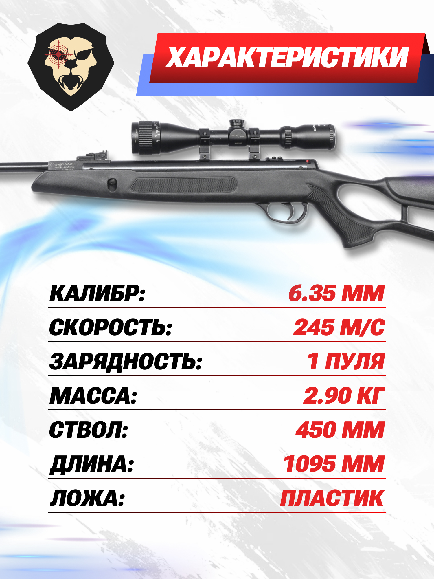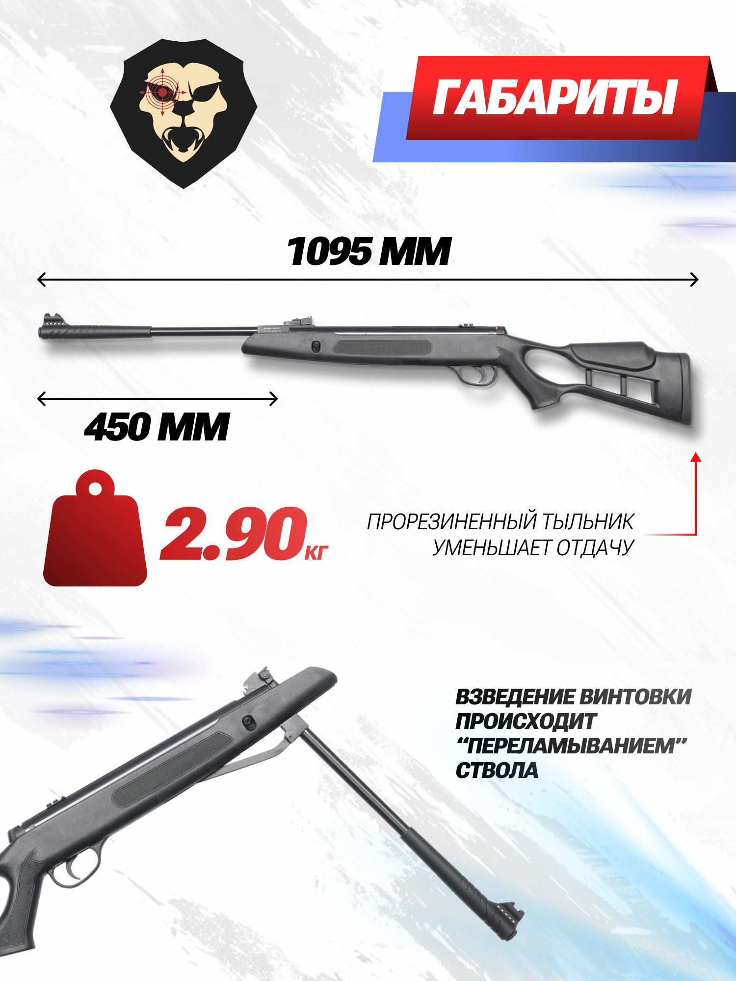Последнее сделало возможным разгон снаряда до 245 метров в секунду, что приближает изделие к переломной пневматике следующего класса. В тот же момент этот образец отнесли к категории конструктивно-схожих благодаря мощности менее 3 Дж. Из этого следует, что стать владельцем рассматриваемой модели можно без лицензии.