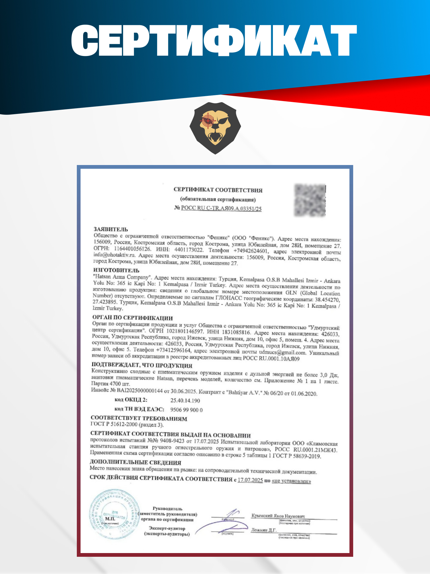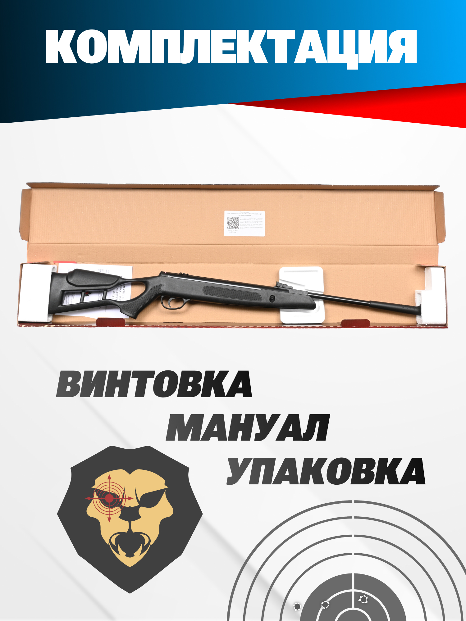 | Комплектация | Винтовка, упаковка, краткая документация, копия сертификата (по запросу покупателя) |