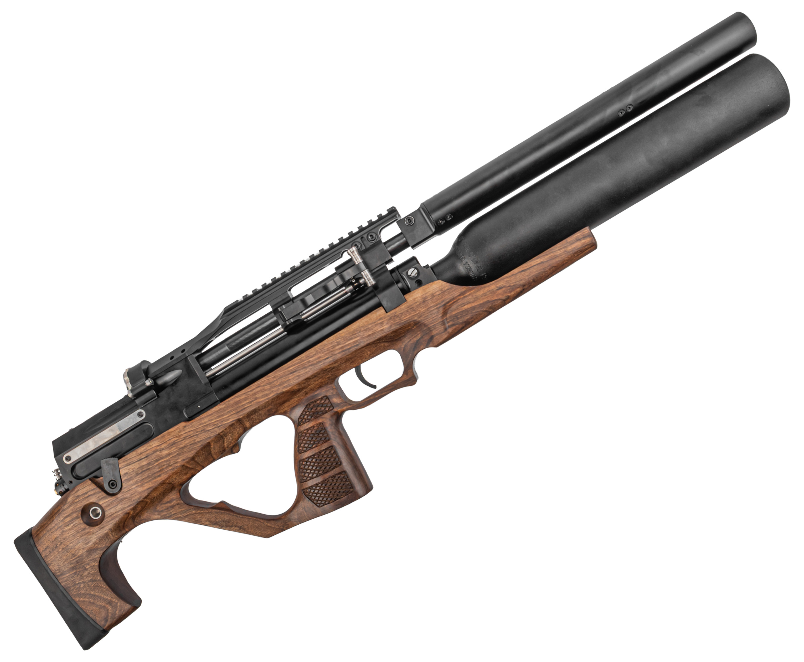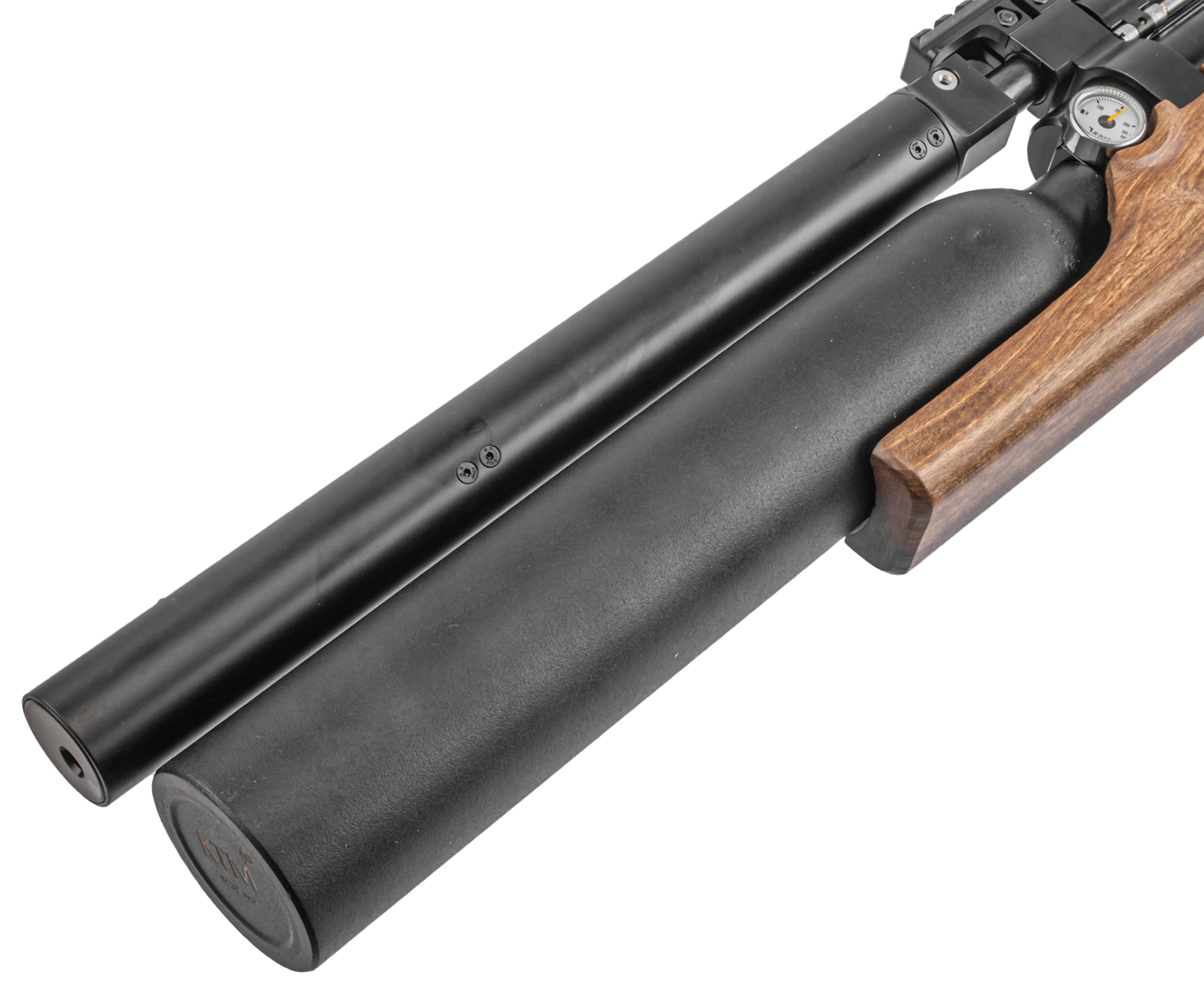 Максимальное давление, при котором пневматика функционирует в штатном режиме, составляет 300 Бар. Контролировать текущий уровень заполнения можно при помощи интегрированного манометра - датчик смонтирован у основания баллона с левой стороны. Исполнение SP BullPup имеет использует прямоточную конфигурацию газораспределения.