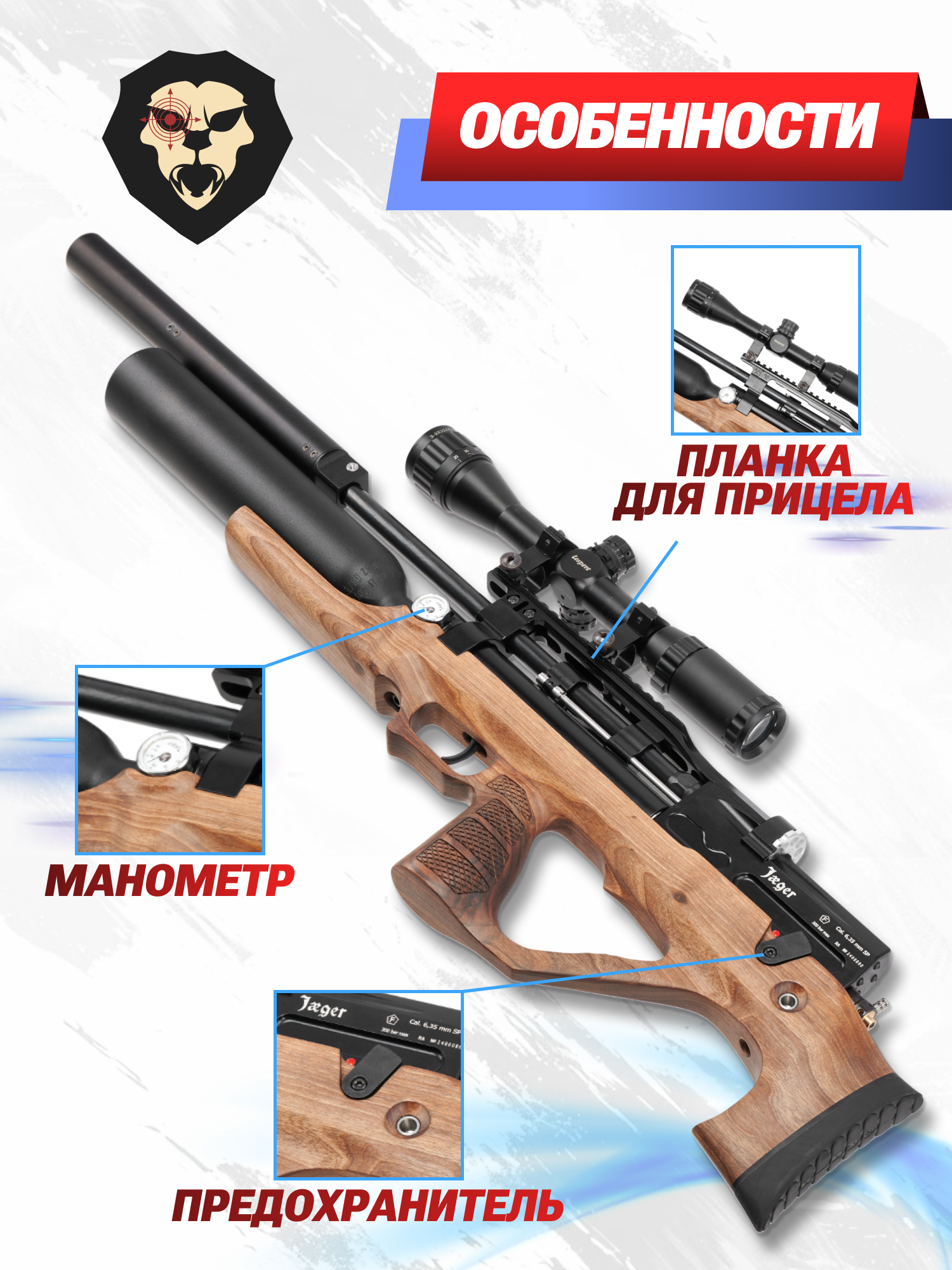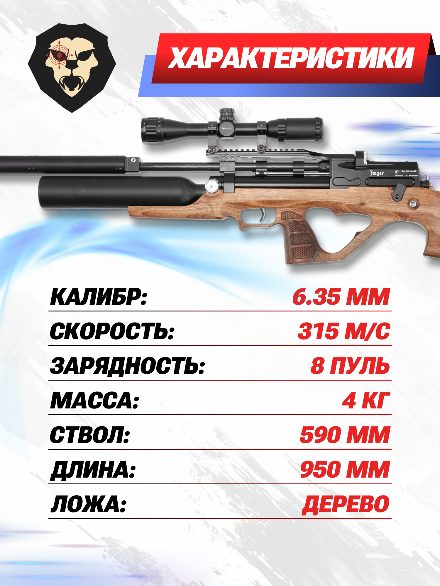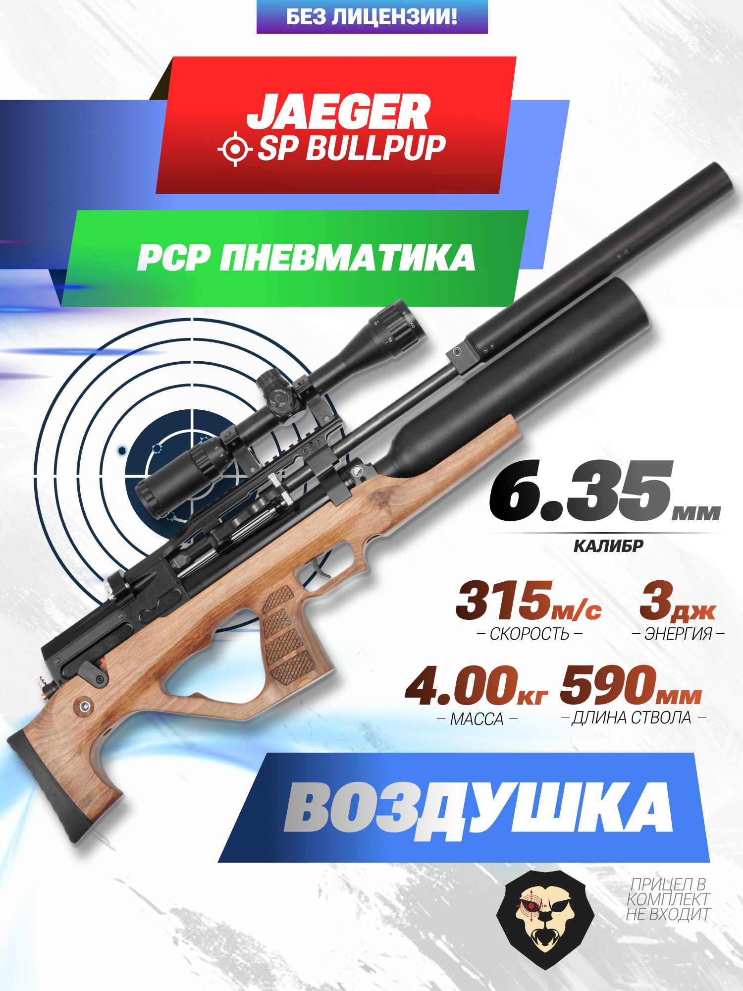 Пневматическая винтовка Jaeger SP BullPup 6.35 мм (590 мм, передний взвод, AP, колба, F316L/AP/B) купить в интернет-магазине Popadiv10.