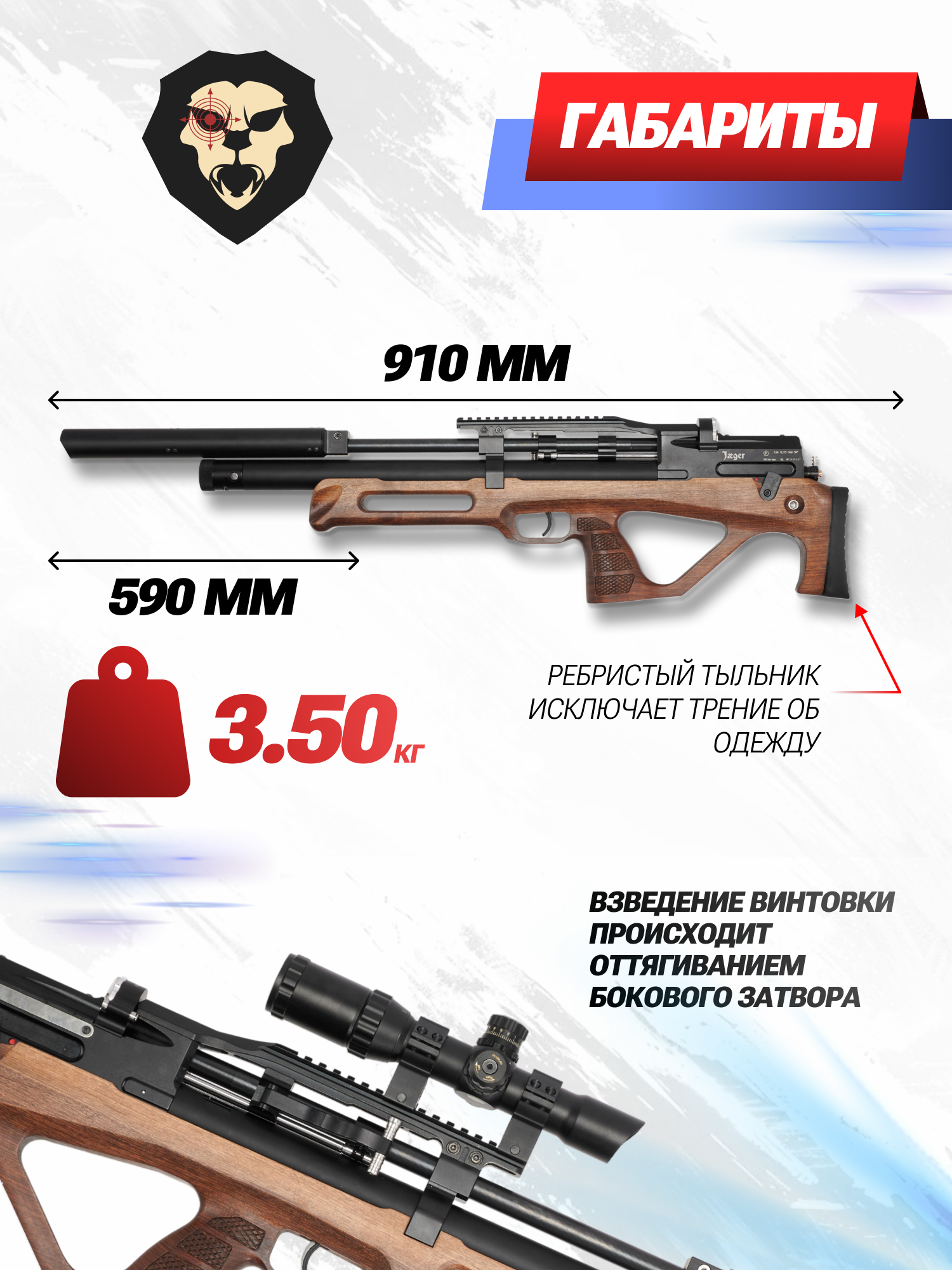 Модельный ряд PCP пневматики на российском гражданском рынке оружия регулярно пополняется современными экземплярами винтовок и пистолетов, которые подойдут как для развлекательной стрельбы, так и спортивных дисциплин. Из числа изделий отечественного производства стоит выделить новинку от компании Егерь, которая представлена в БуллПап конфигурации и оснащается ложей из натурального дерева.