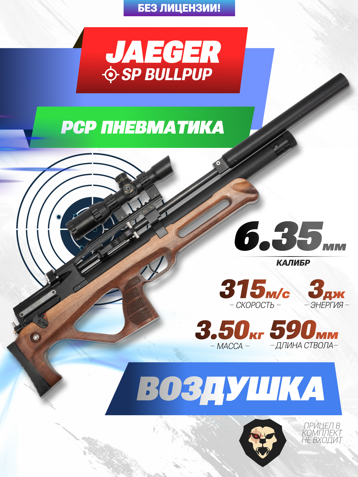 Пневматическая винтовка Jaeger SP BullPup 6.35 мм (590 мм, AP, передний взвод, F316L/AP/T) купить в интернет-магазине Popadiv10.