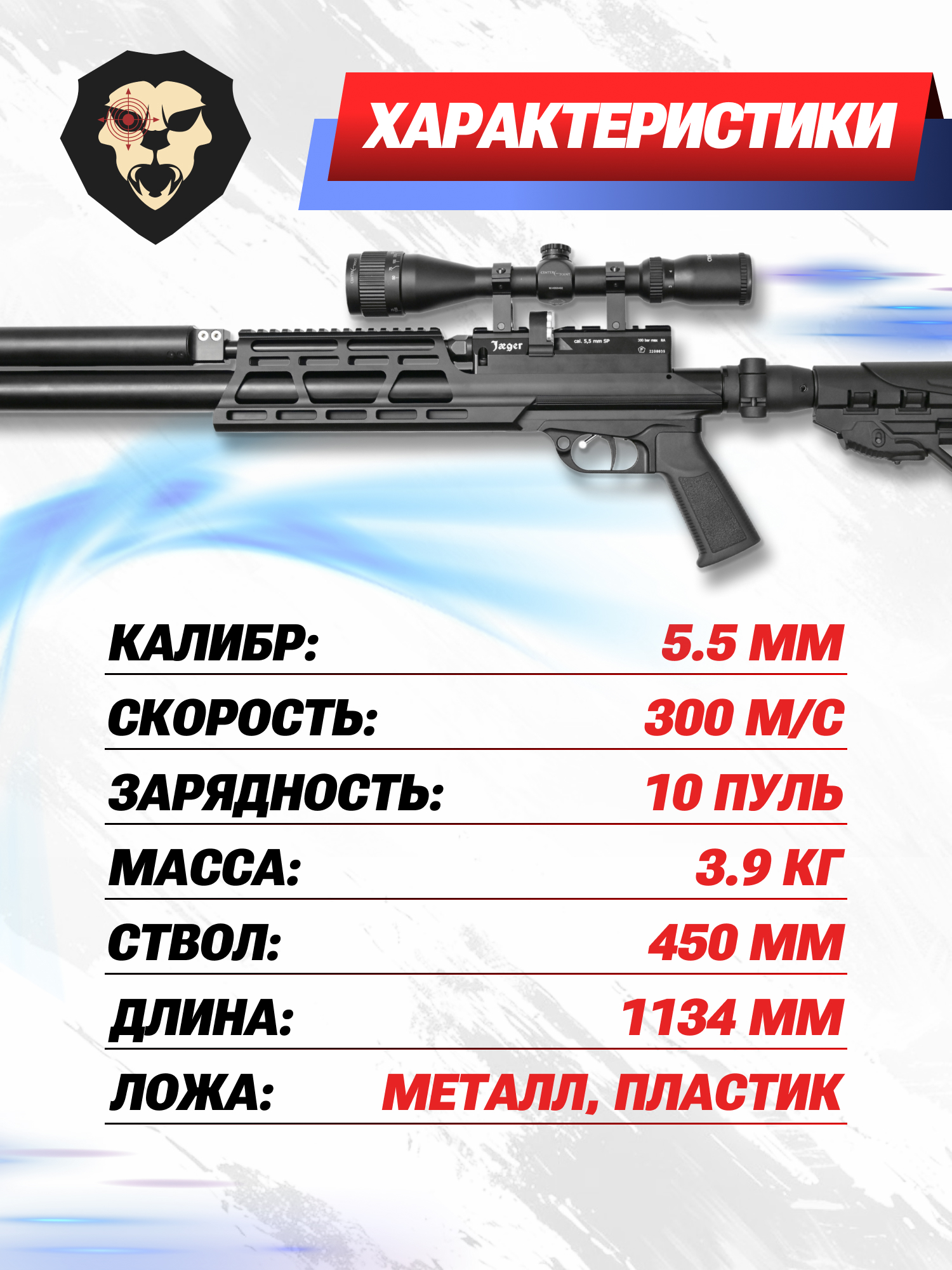 Информация о товаре "Пневматическая винтовка Jaeger SP 450 мм Карабин (5.5 мм, 450 мм, складной, металлическая, LW)" носит ознакомительный характер, и не является публичной офертой, определяемой положениями Статьи 437 Гражданского кодекса Российской Федерации, характеристики, внешний вид, цвет и комплектация могут быть изменены производителем без уведомления.