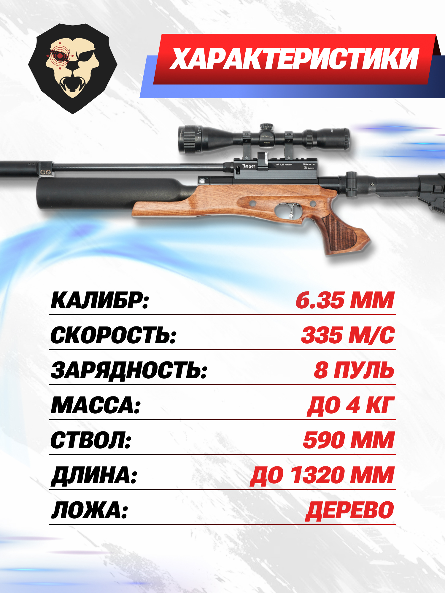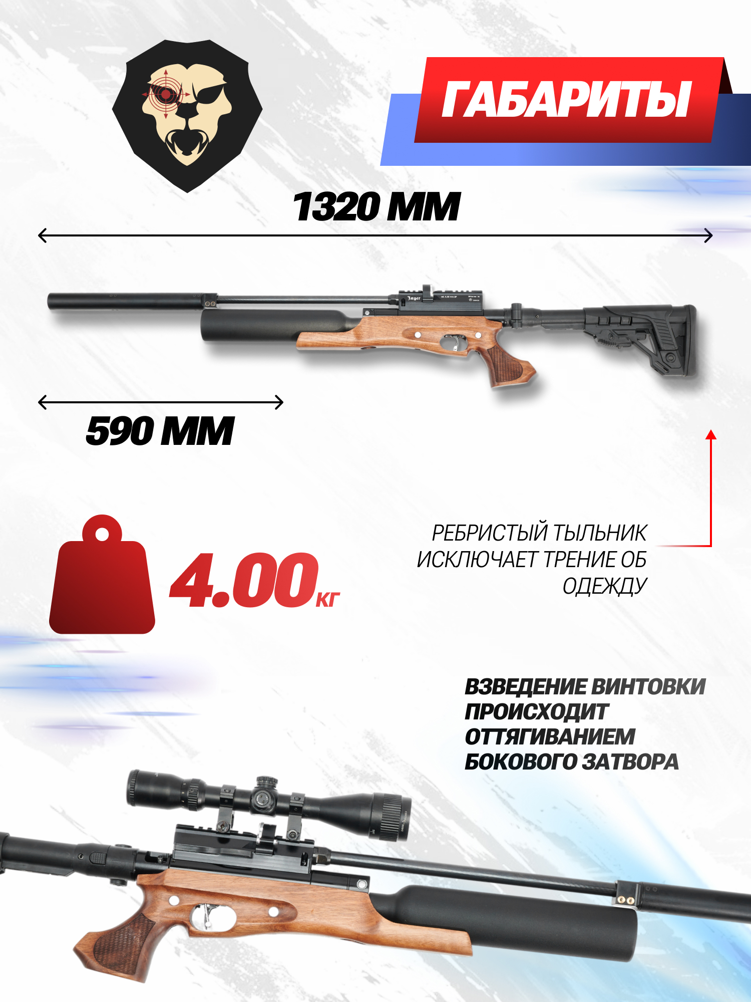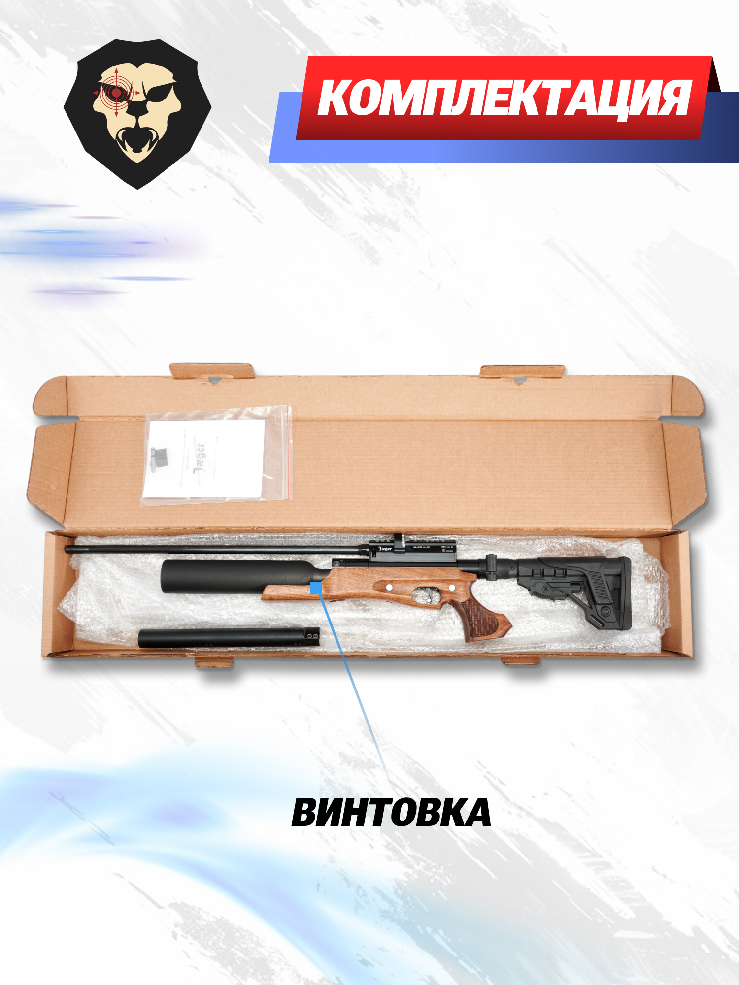 | Комплектация | Винтовка, упаковка, заправочный штуцер, краткая документация, копия сертификата (по запросу покупателя) |