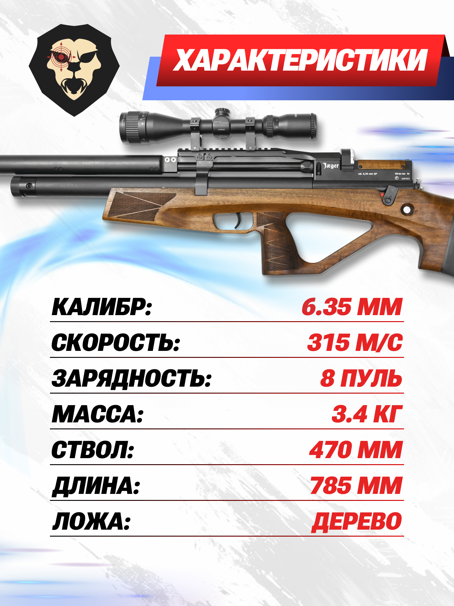 Российский рынок гражданской длинноствольной пневматики представляет стрелка широкий выбор пневматического оружия, применяемого как для развлекательных целей, так и в качестве профессионального инструмента для спортивной и охотничьей стрельбы. Учитывая популярность категории винтовок предварительного нагнетания воздуха российский оружейный бренд Jager разработал новую винтовку Jager SP PCP 6.35 мм с длиной ствола 47 сантиметров.