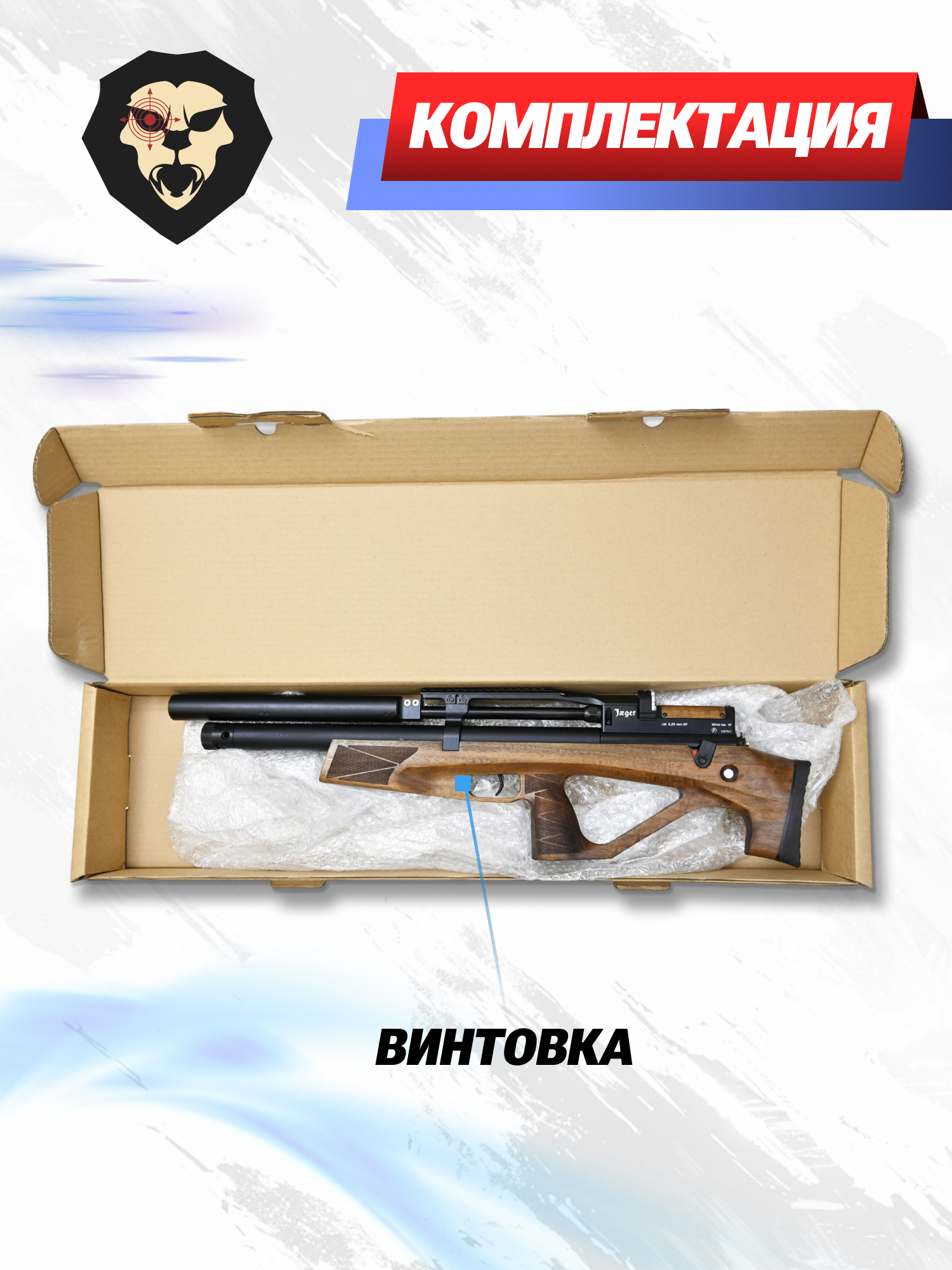| Комплектация | Винтовка, упаковка, магазин, саундмодератор, лоток, РТИ, пружина, заправочный штуцер, краткая документация, копия сертификата (по запросу покупателя) |