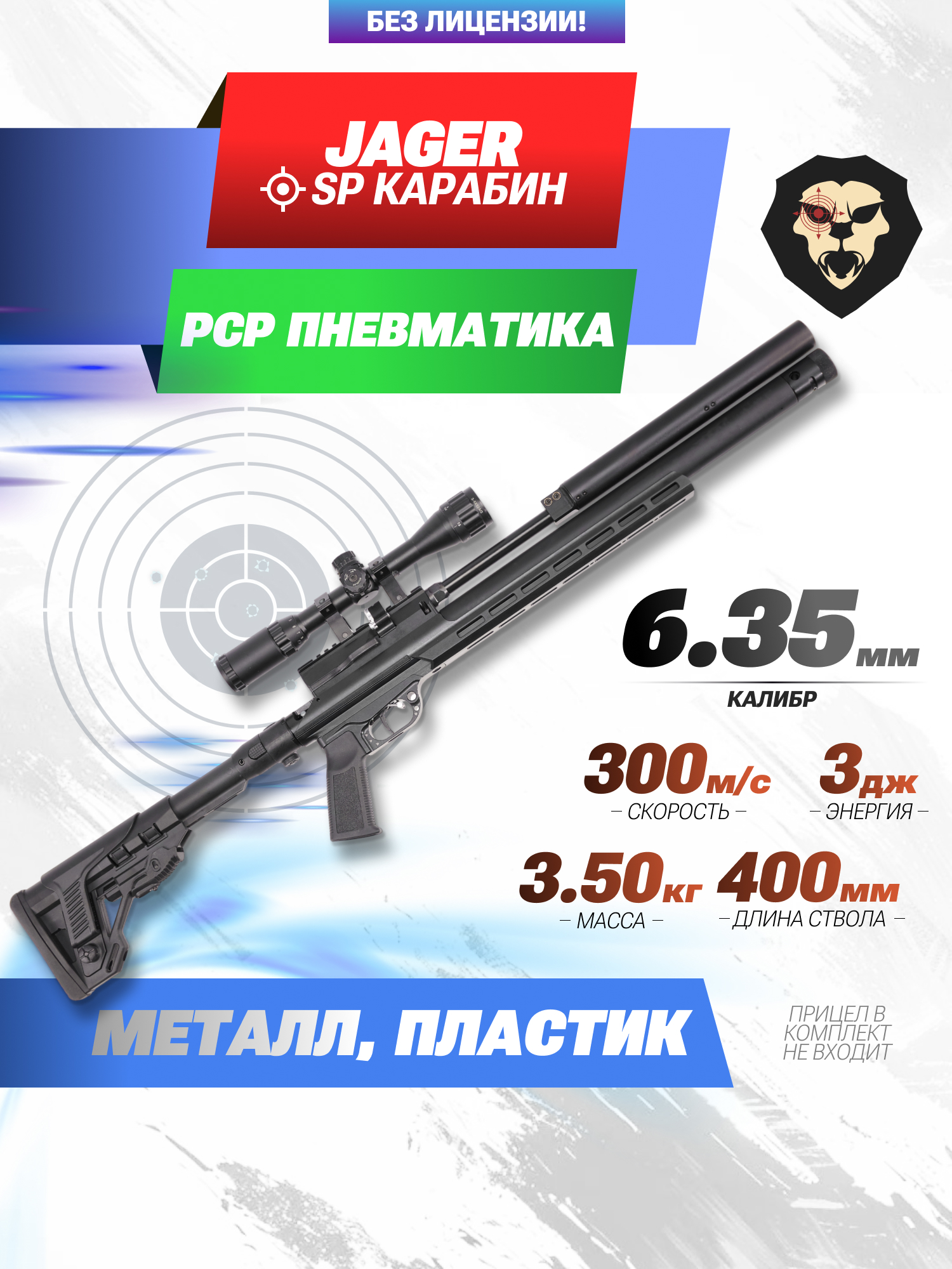 Карабин Jager SP обозреваемой модели доступен для покупки без нужды в оформлении лицензии, так как мощность выстрела не превышает 3-х Джоулей. Исходя из заявленных заводских характеристик, экспортные образцы пневматики этой серии развивают скорость до 300 метров в секунду.