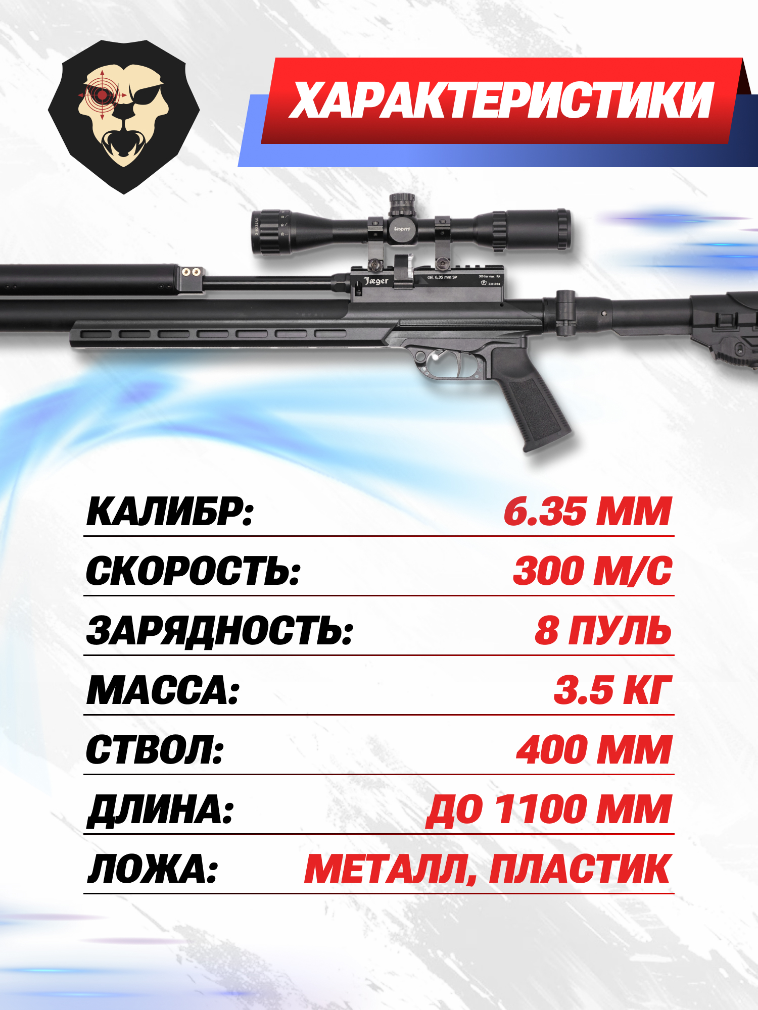 Российские изготовители пневматики ежегодно радуют любителей развлекательной и спортивной стрельбы новейшими экземплярами пистолетов и винтовок. Рассматриваемая модель Jager SP - обновленный вариант классического карабина в современном тактическом исполнении. Как и вся продукция бренда, образец отвечает высоким стандартам качества, что достигается скрупулезной проработкой всех узлов и применением износостойких материалов.