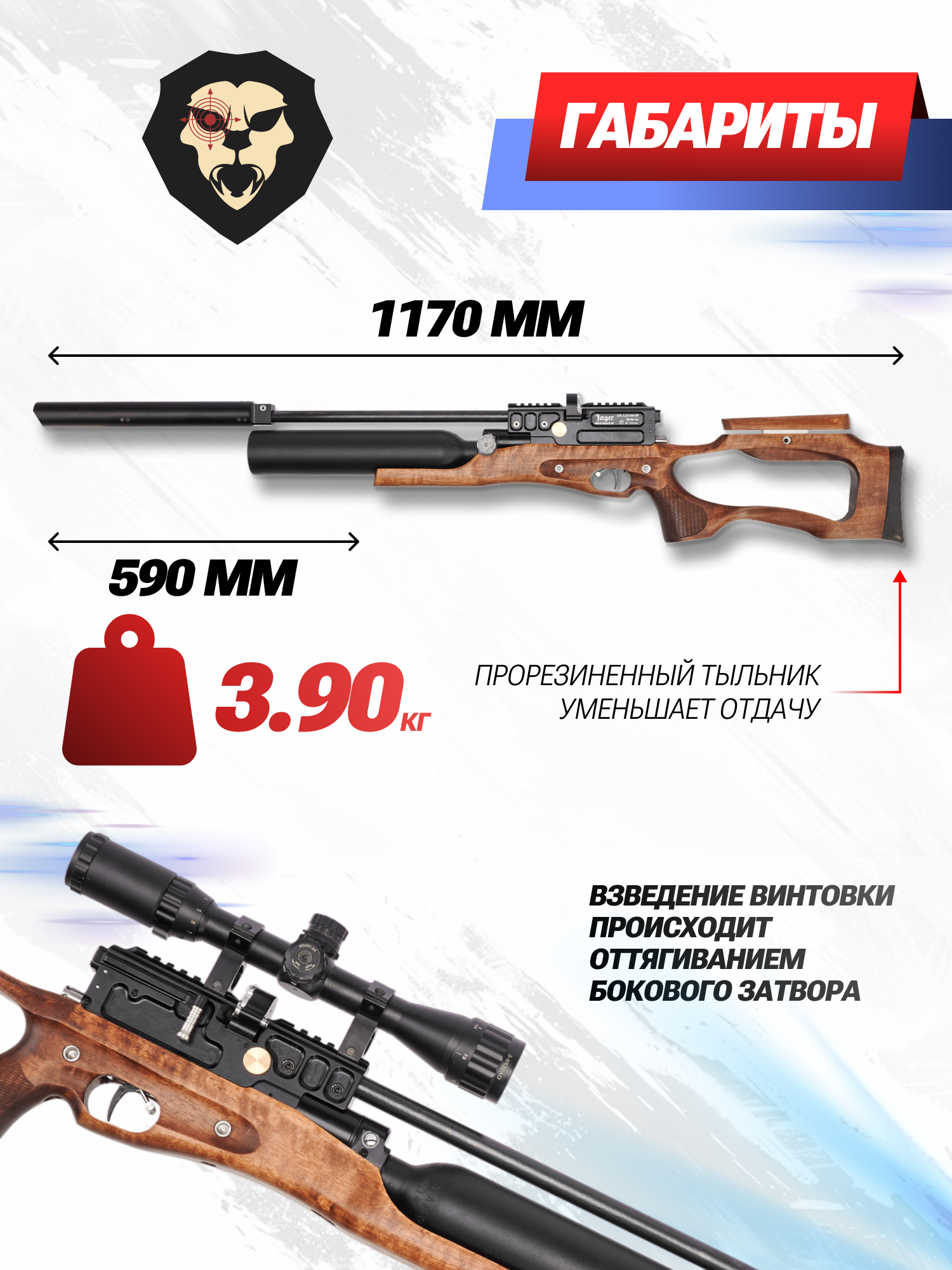 | Комплектация | Винтовка, магазин, пульный лоток, заправочный штуцер, упаковка, краткая документация, копия сертификата (по запросу покупателя) |