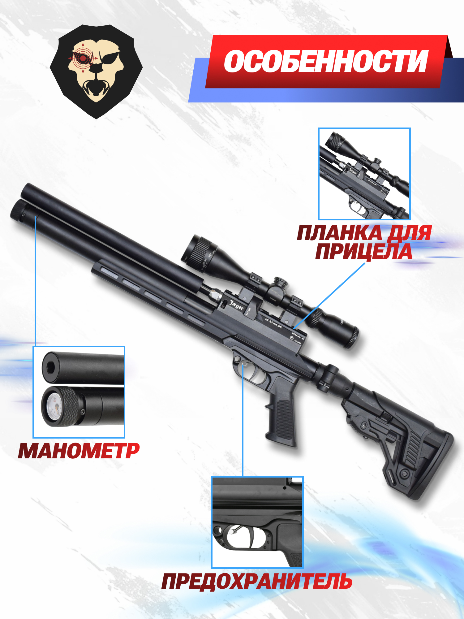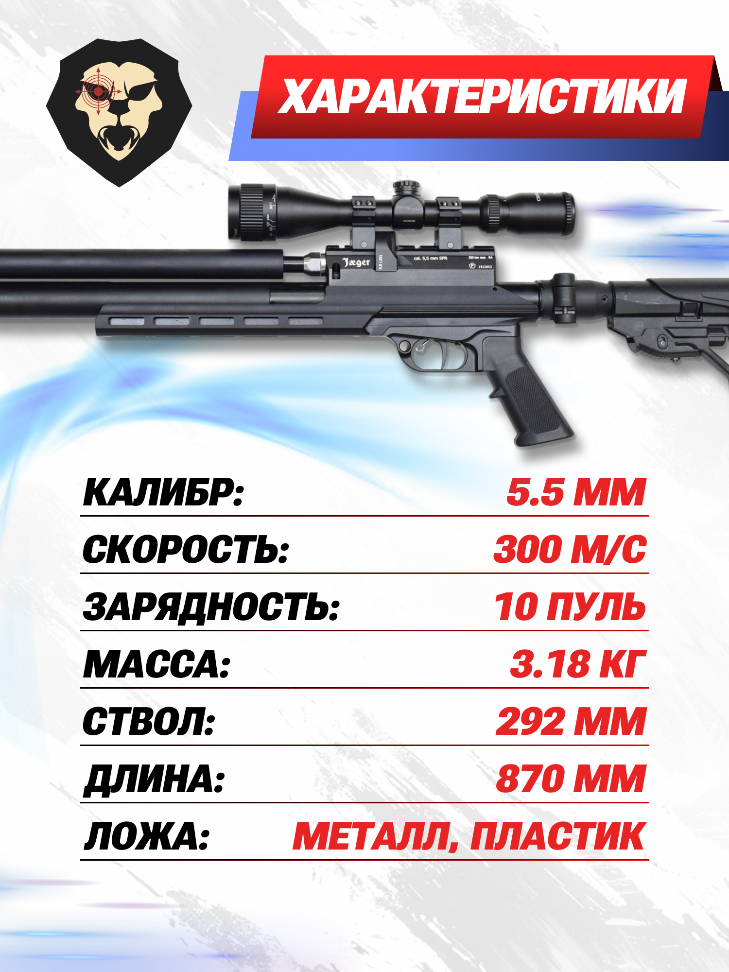 Информация о товаре "Пневматическая винтовка Jager SPR Карабин 5.5 мм (292 мм, AP, алюминиевая ложа, складная, R455)" носит ознакомительный характер, и не является публичной офертой, определяемой положениями Статьи 437 Гражданского кодекса Российской Федерации, характеристики, внешний вид, цвет и комплектация могут быть изменены производителем без уведомления.