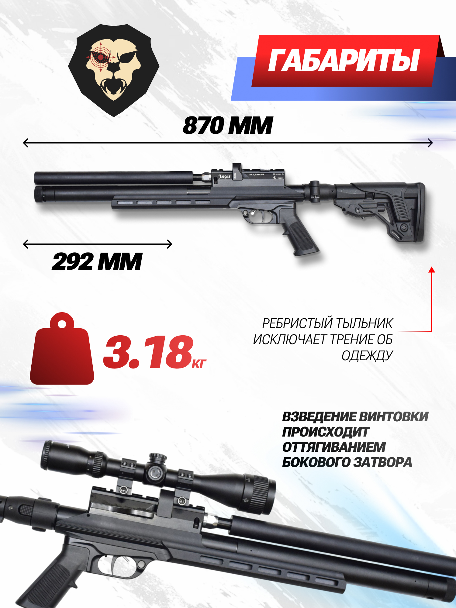 | Комплектация | Винтовка, магазин, упаковка, заправочный штуцер, краткая документация, копия сертификата (по запросу покупателя) |