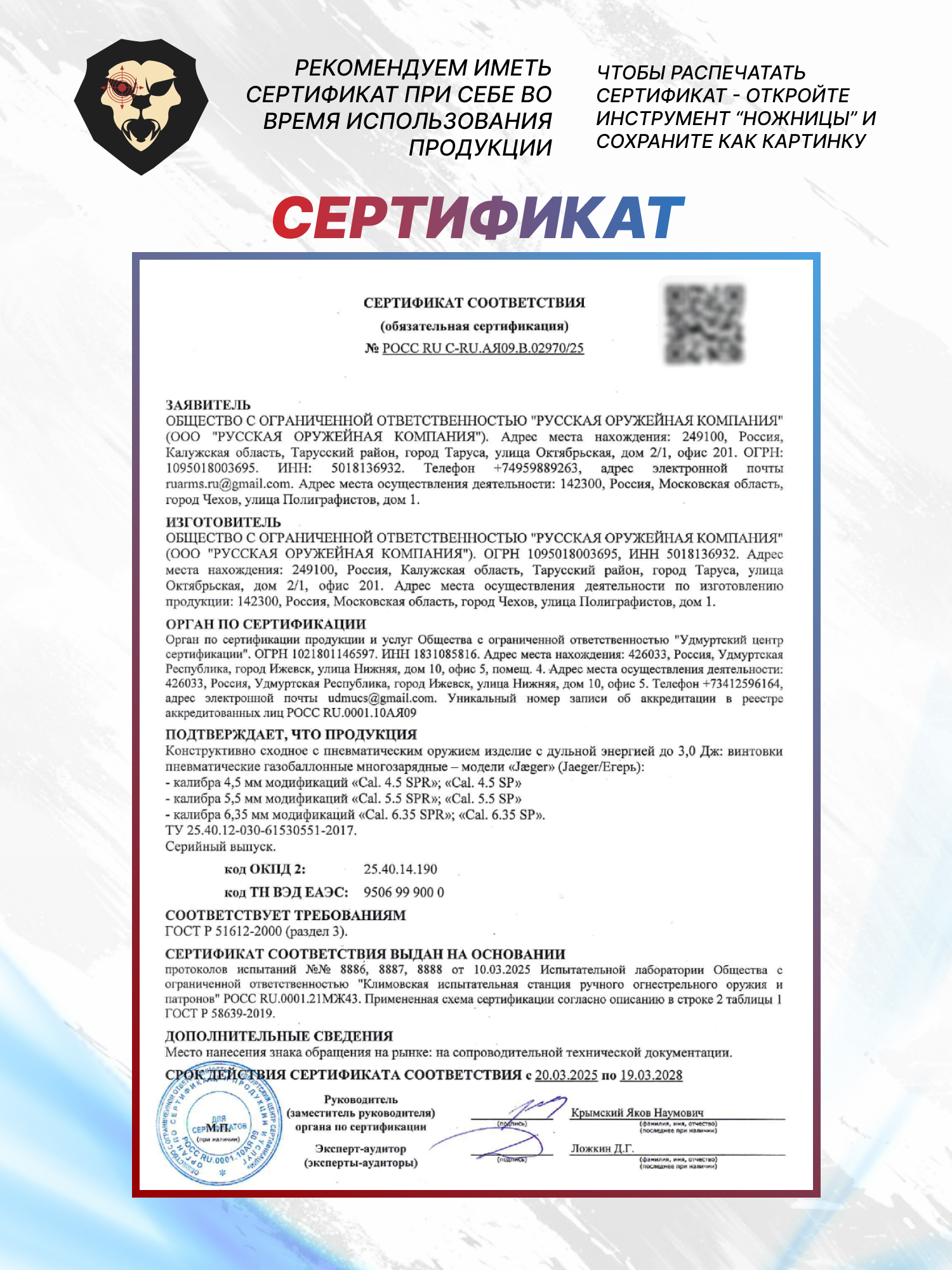 | Комплектация | Винтовка, упаковка, магазин - 1 шт, заправочный штуцер, краткая документация, копия сертификата (по запросу покупателя) |