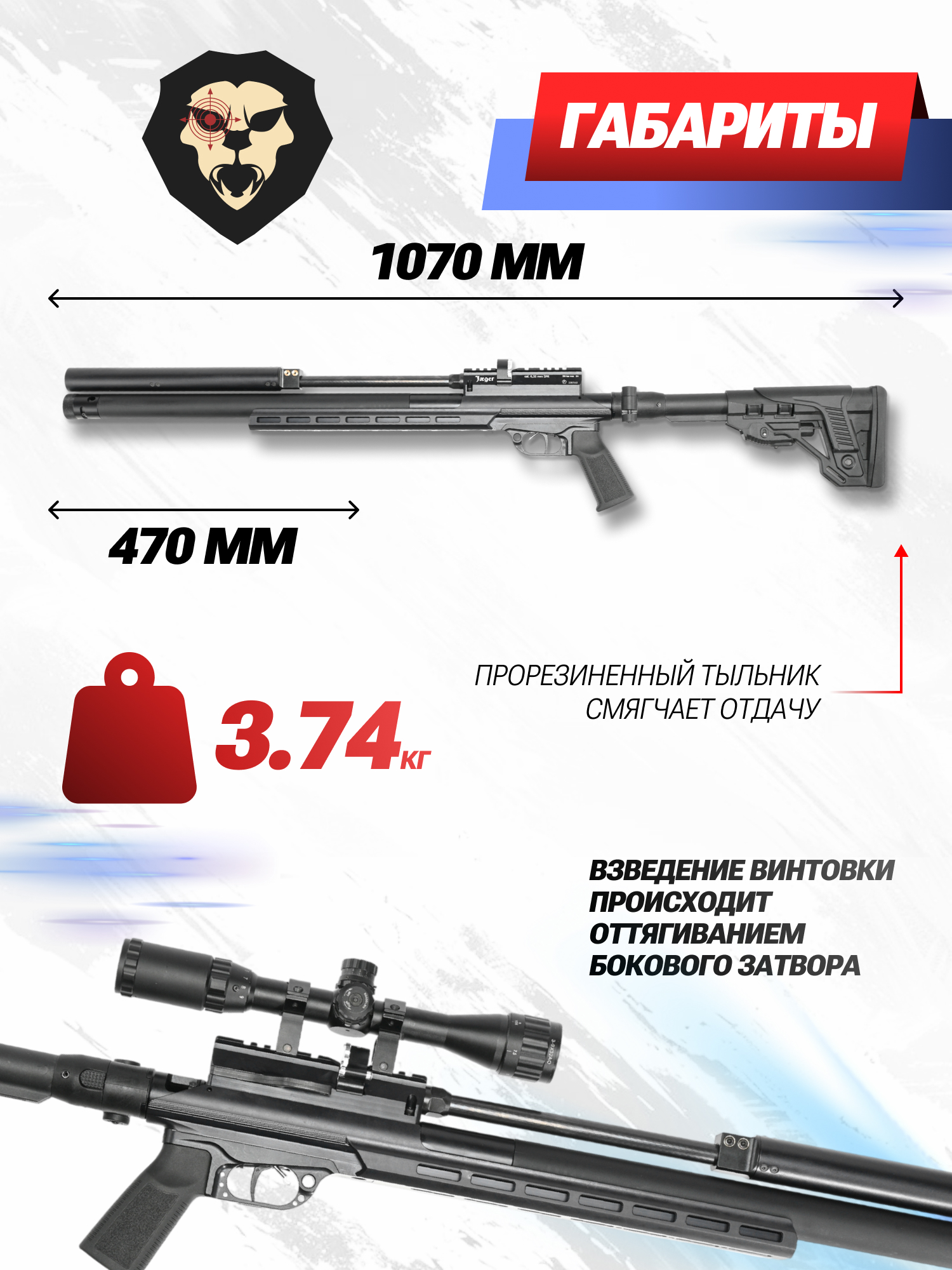 Русская оружейная компания специализируется на изготовлении всевозможных образцов пневматики, применяемых для различных направлений стрелковой подготовки, которые не только не ограничиваются развлекательными целями, но и позволяют заниматься спортивными дисциплинами, а также охотой. На мощностях завода выпускаются винтовки Jager, линейка которых пополнилась новой моделью в классической карабинной компоновке.
