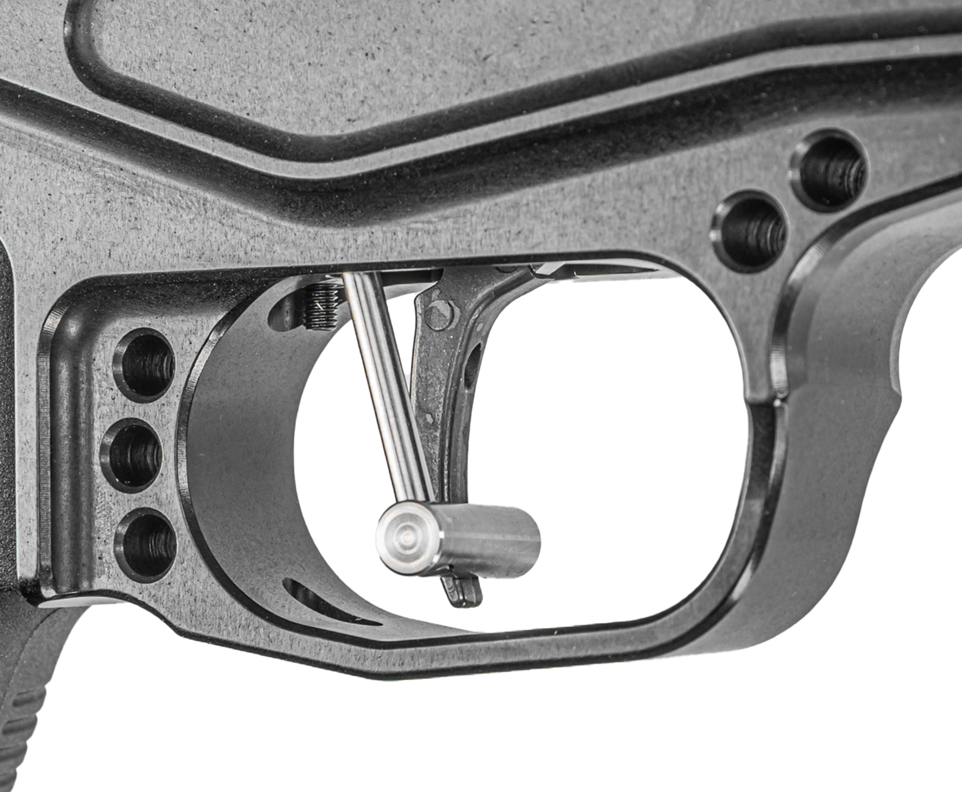 Стрельба осуществляется в одиночном режиме с предварительного взвода затвора. Рычаг расположен по правую сторону коробки и имеет прямой биатлонный ход, что не мешает манипуляциям при установленной оптике. Под навесное оборудование предусмотрена удлиненная посадочная база Weaver 22 мм, что дает выставить прибор на нужном удалении.