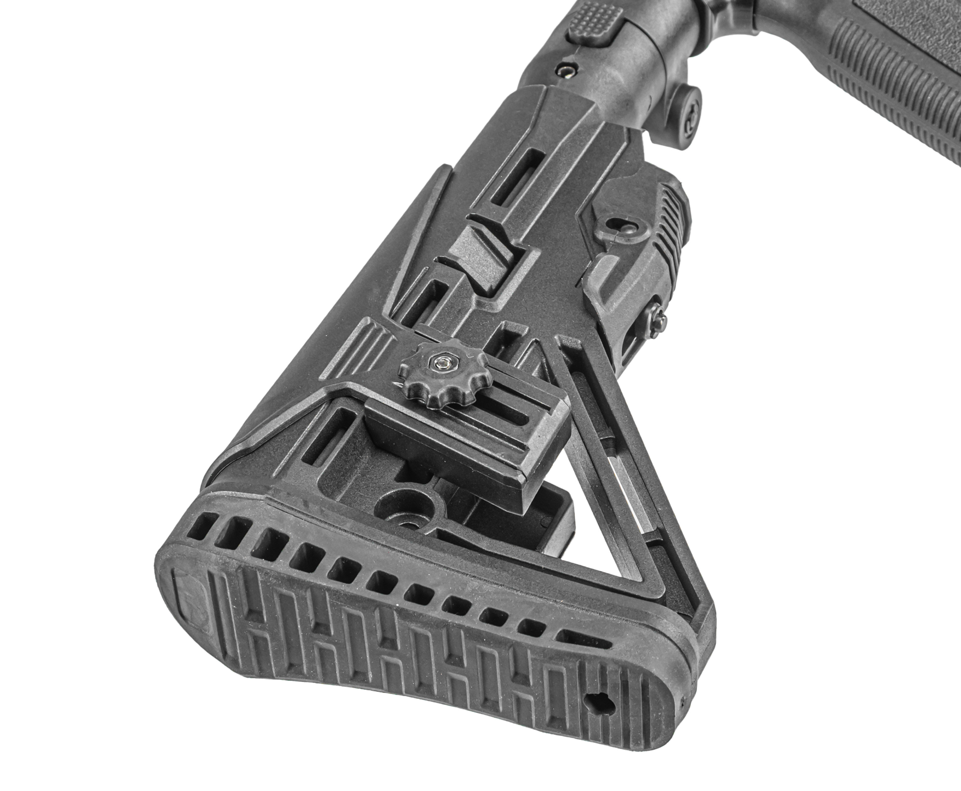 Из немаловажных достоинств Егеря СПР стоит отметить эргономику модели. Комфорт удержания и вкладки обеспечивается фурнитурой из пластика - полимер используется в пистолетной рукояти и телескопическом прикладе. Последний помимо регулировки положения под комплекцию владельца, имеет настраиваемую по высоте щеку, тогда как узел в основании трубы позволяет сложить плечевой упор вбок, тем самым уменьшив габарит оружия.