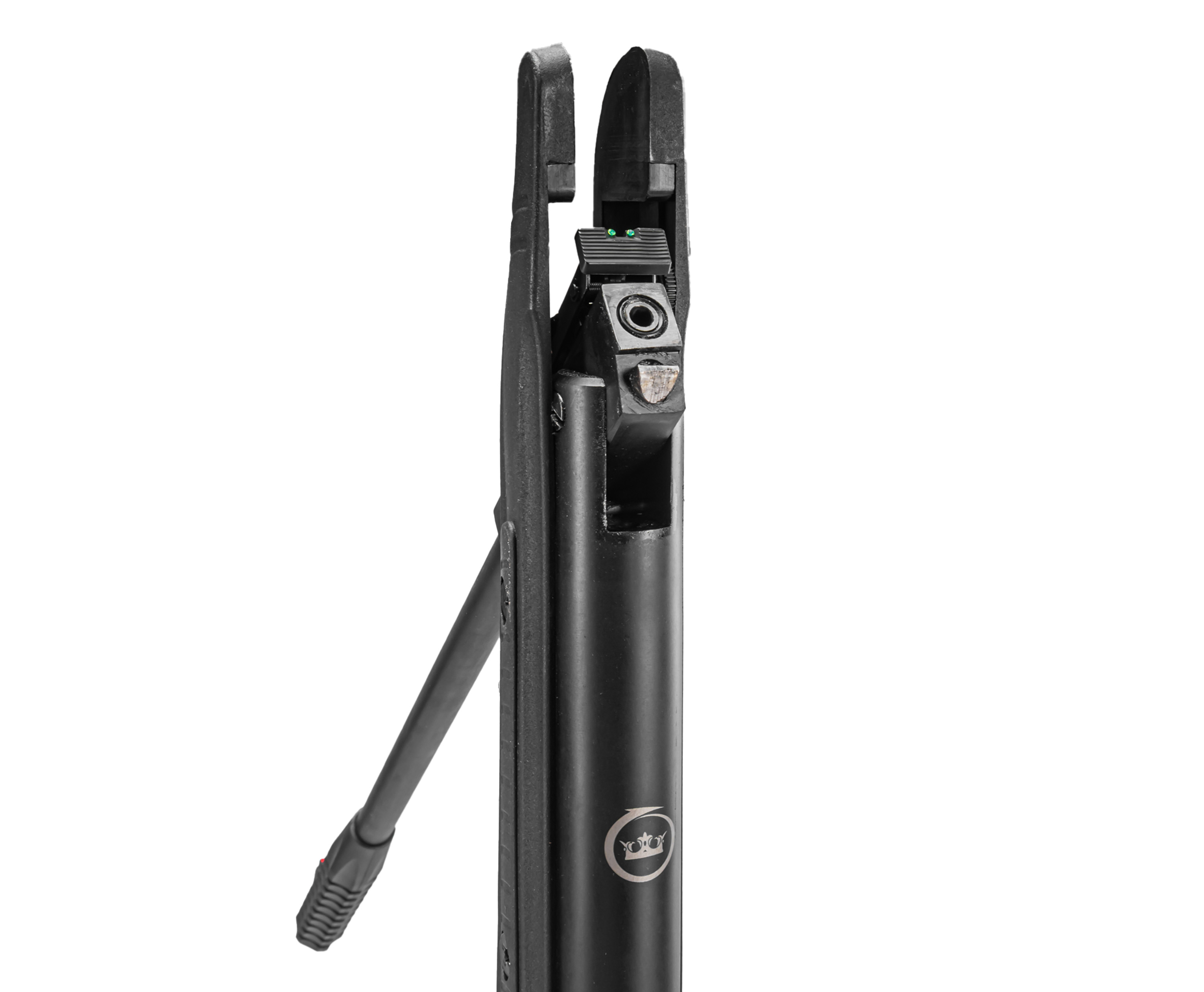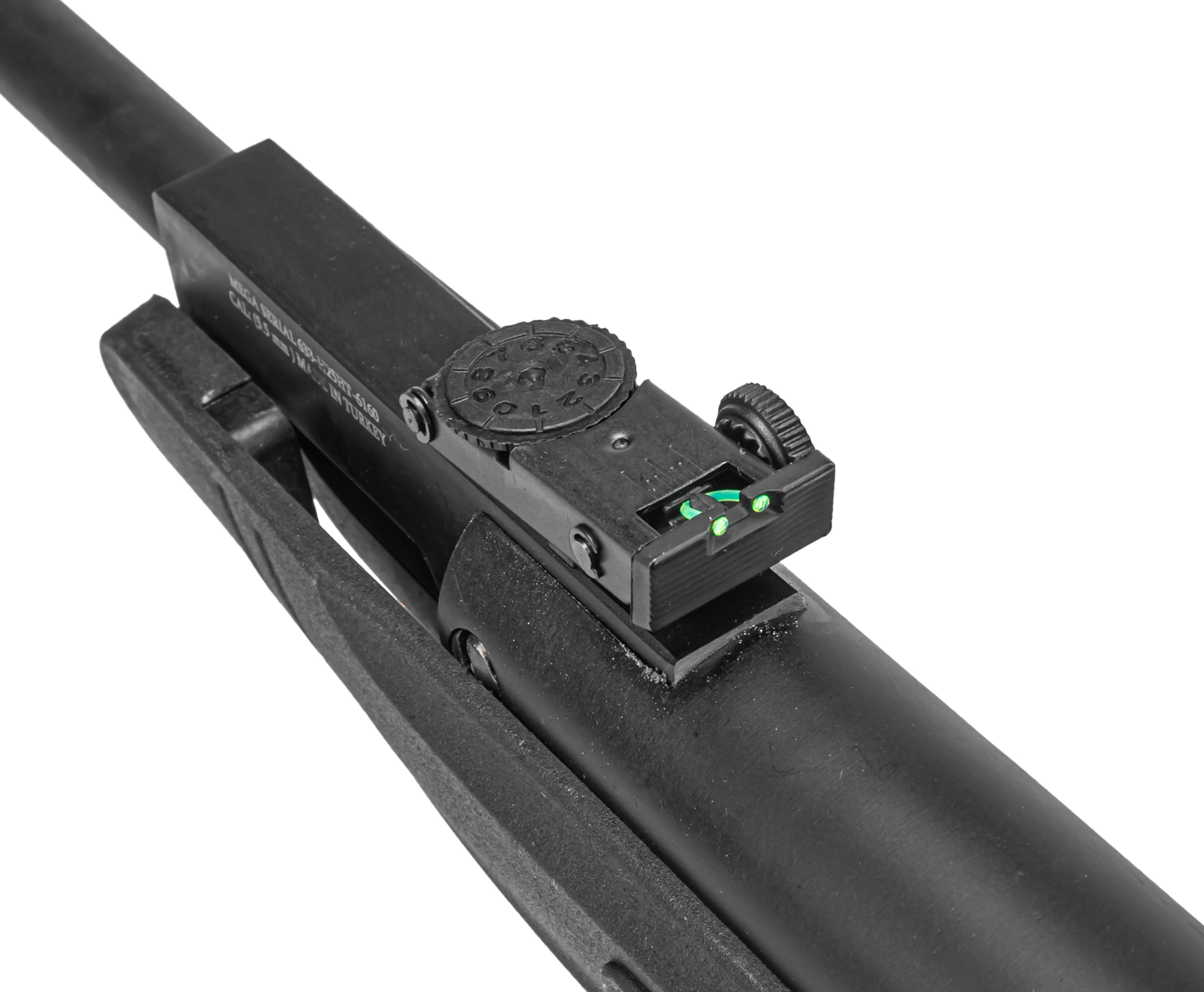 Пневматическая винтовка Kral M-04 оборудована классическими приспособлениями для наведения открытого типа. Мушка и регулируемый целик дополнены светоотражающими фибероптическими вставками, что увеличивает их заметность при недостаточной видимости. Вдобавок допускается монтаж навесного оборудования - прицел по усмотрению фиксируется кольцами, совместимыми с планкой «Ласточкин хвост».