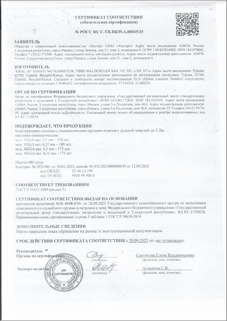 | Комплектация | Винтовка, упаковка, краткая документация, копия сертификата (по запросу покупателя) |