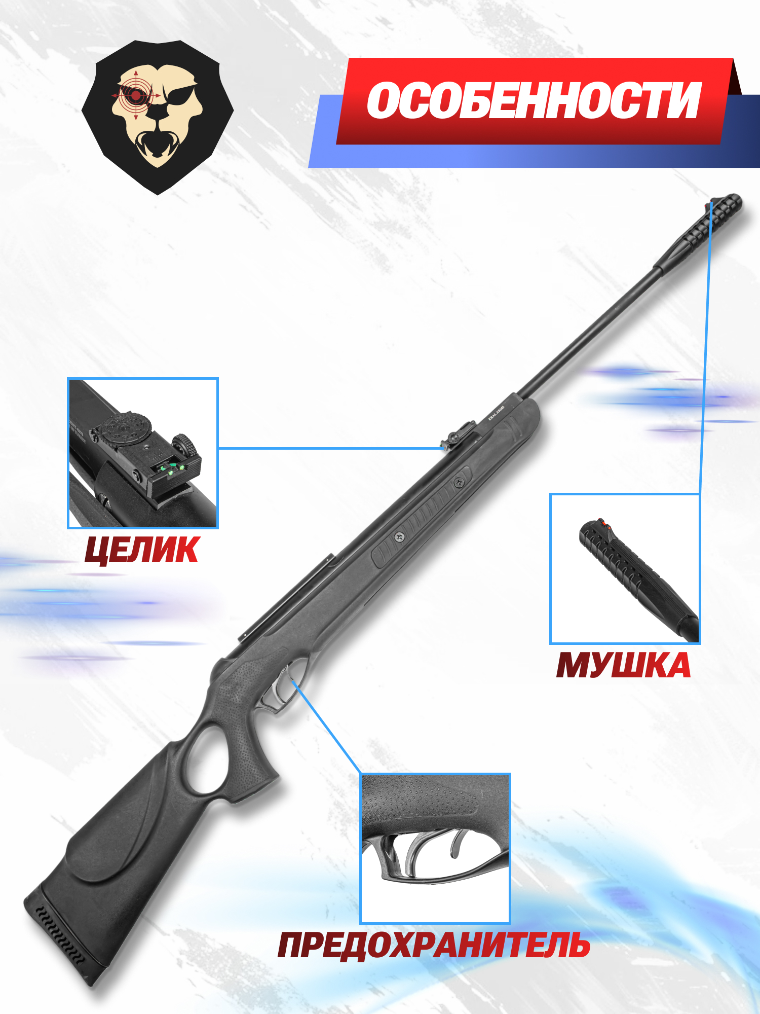 Внимание! Данная модель поставляется в разрешенной мощности для свободного приобретения на территории Российской Федерации. При этом в модели имеется возможность увеличения мощности путем замены части деталей или настройки конструкции, однако не стоит забывать о Федеральном законе «Об оружии» № 150 - ФЗ. В случае необходимости, опираясь на данный закон и руководствуясь им, возможно, потребуется получить разрешение от ЛЛР ГУ МВД России после вмешательства в конструкцию.
