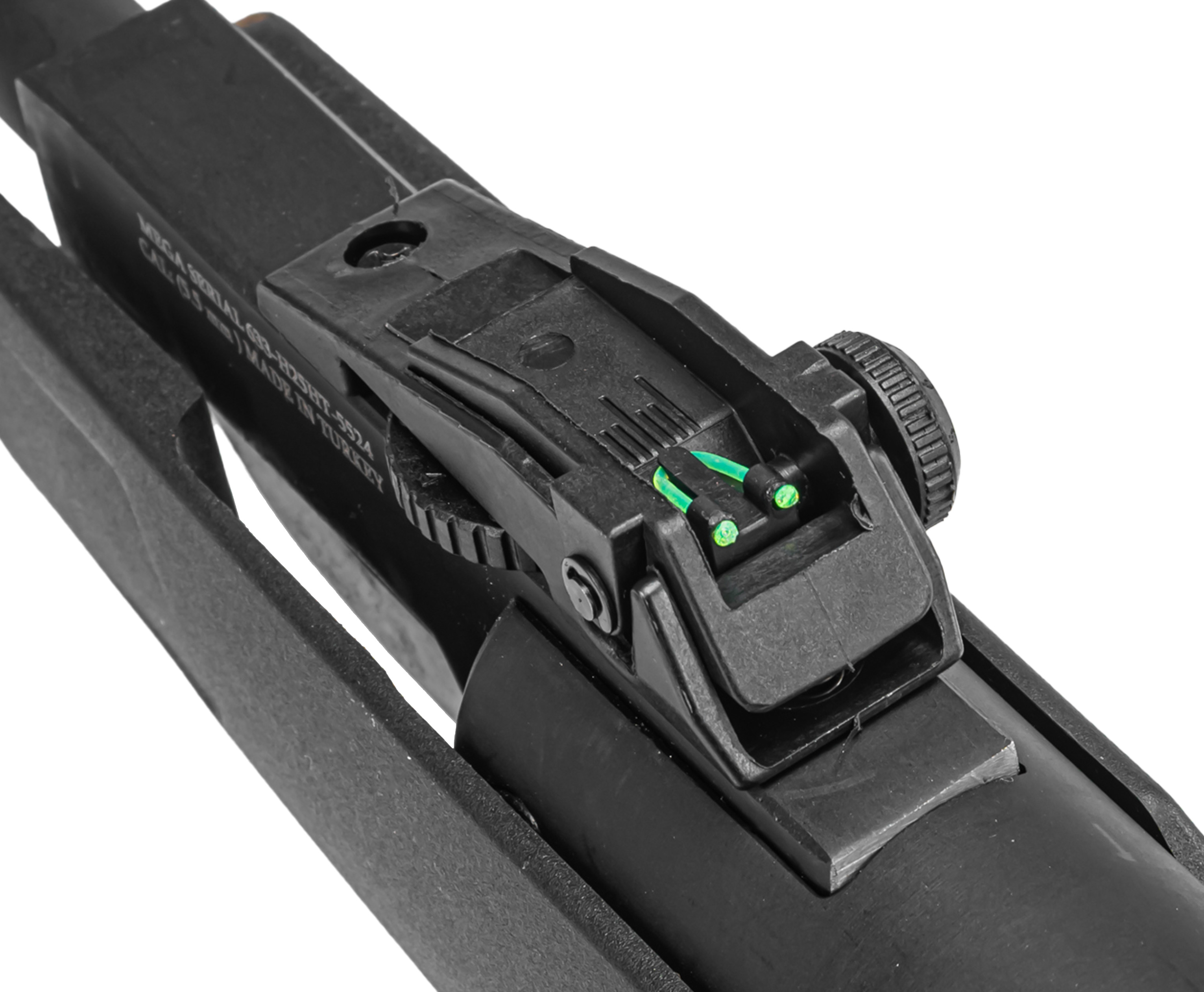 По умолчанию также присутствуют механические приспособления. Целик по мере необходимости настраивается, а наличие фиберглассовых вставок делает элементы заметнее при слабом освещении. Вкладка будет комфорта не только правше, но и левше за счет ложи с продуманным дизайном - она выполнена из современного пластика, ввиду чего вес конструкции остался в пределах 3.39 кг.