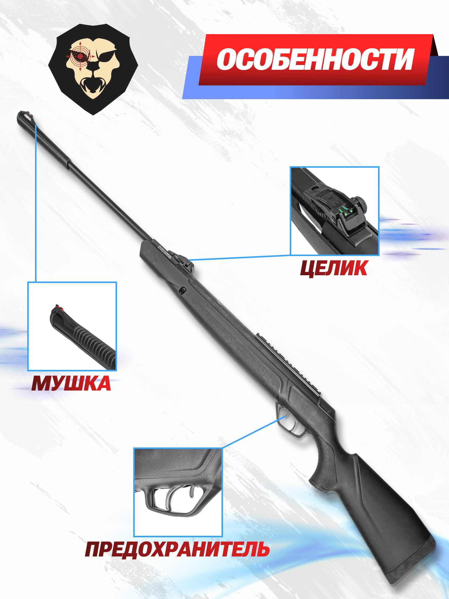 Благодаря нарезному бланку модель примечательна неплохой точностью попадания. Оптика поможет увеличить шансы на результативное поражение мишени. Под навесное оборудование предусмотрен комбинированный интерфейс, который сочетает пазы «Ласточкин хвост» и рельсовую площадку Weaver.