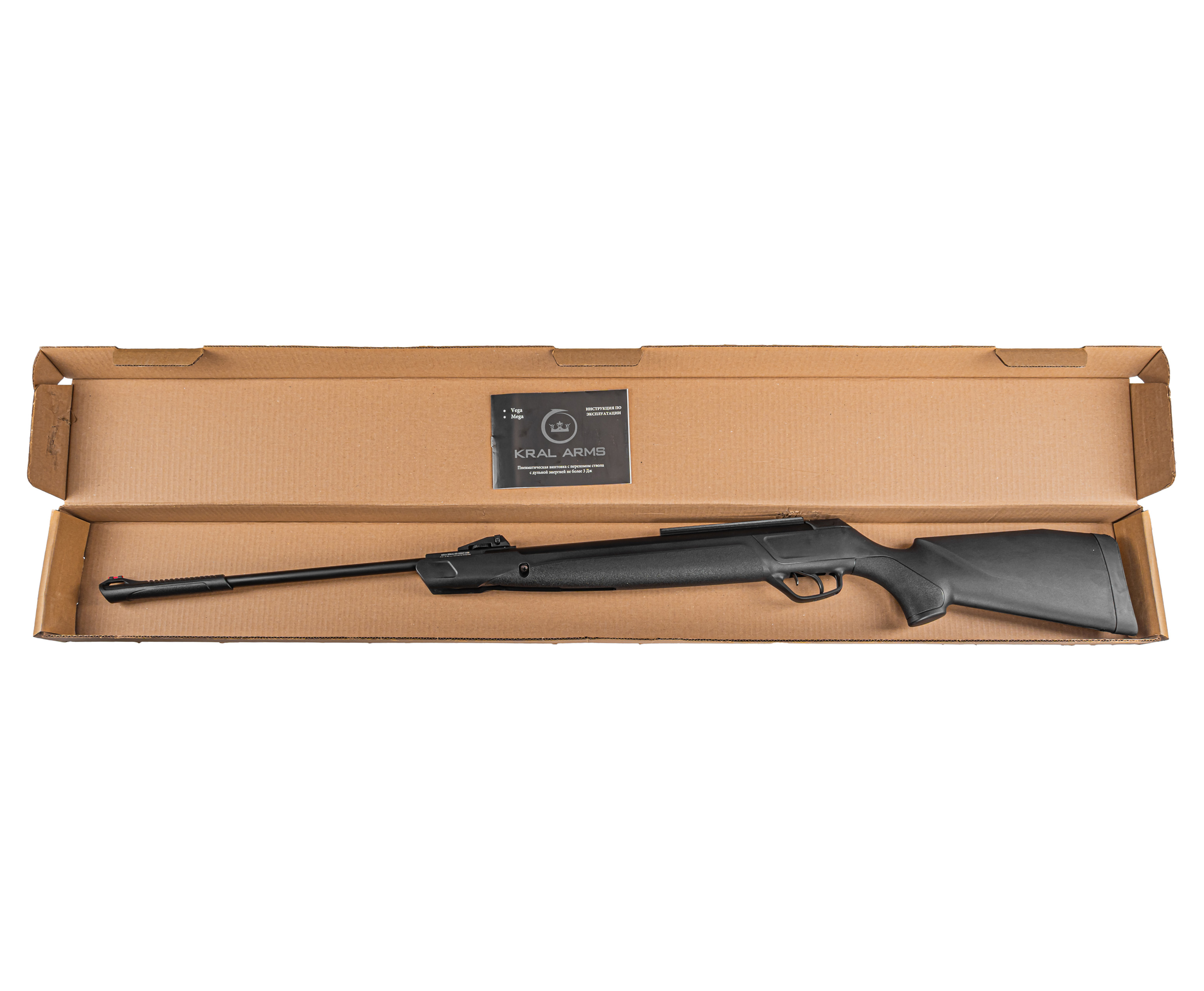 При общем размере 1220 мм Kral Mega выделяется сравнительно небольшой массой 3.29 кг. Снизить вес удалось благодаря внедрению ложи из современного полимера. Кроме этого, конструкция не лишена возможности дооснащения оптикой - под монтаж прицела присутствует комби-планка с пазами «Ласточкин хвост» и Пикатинни.