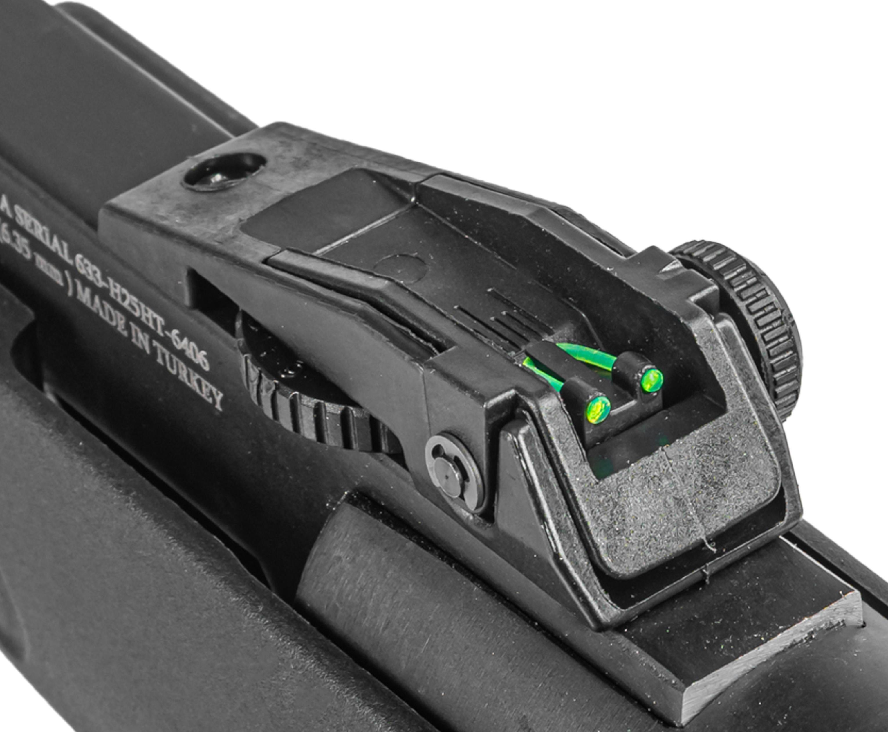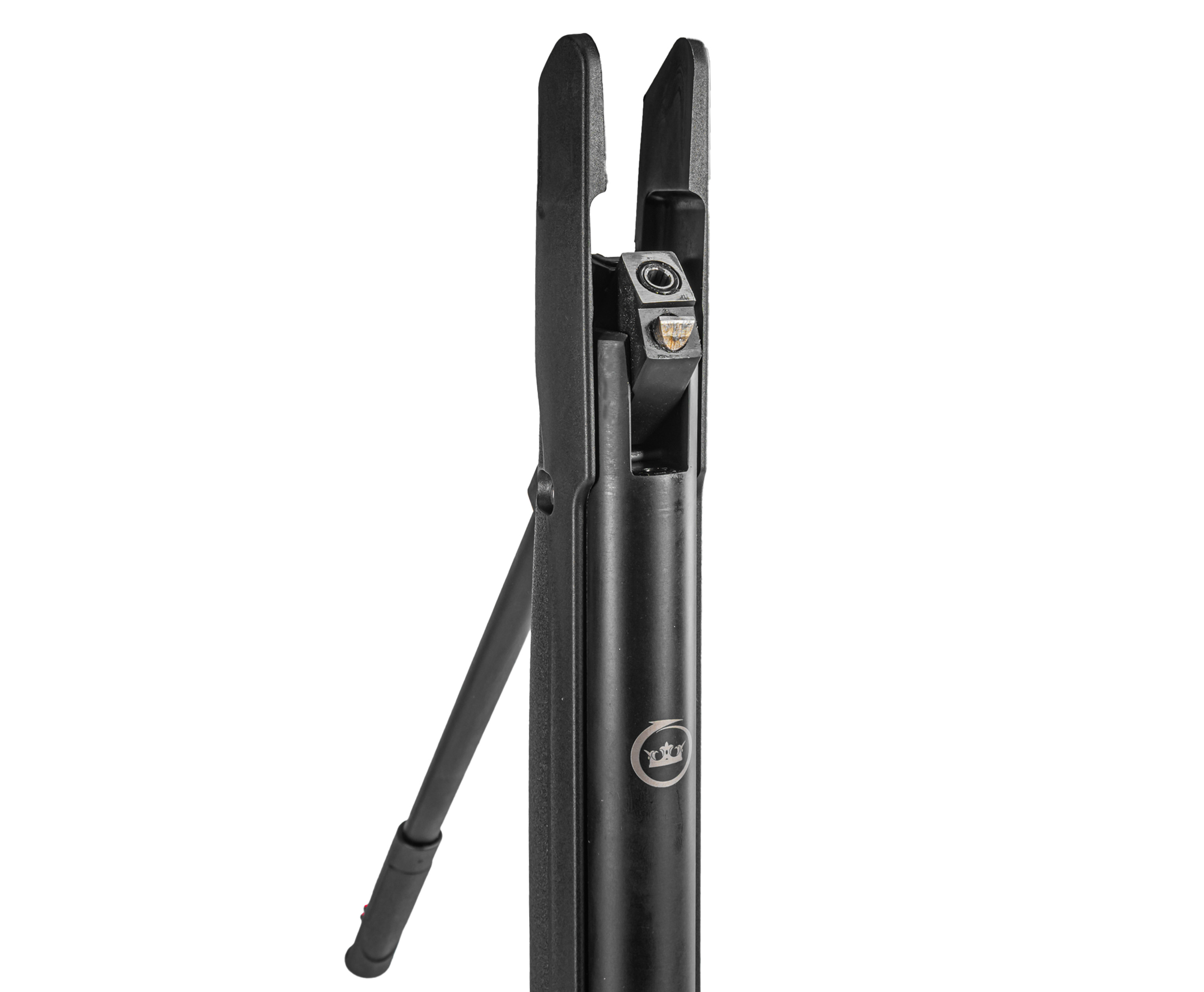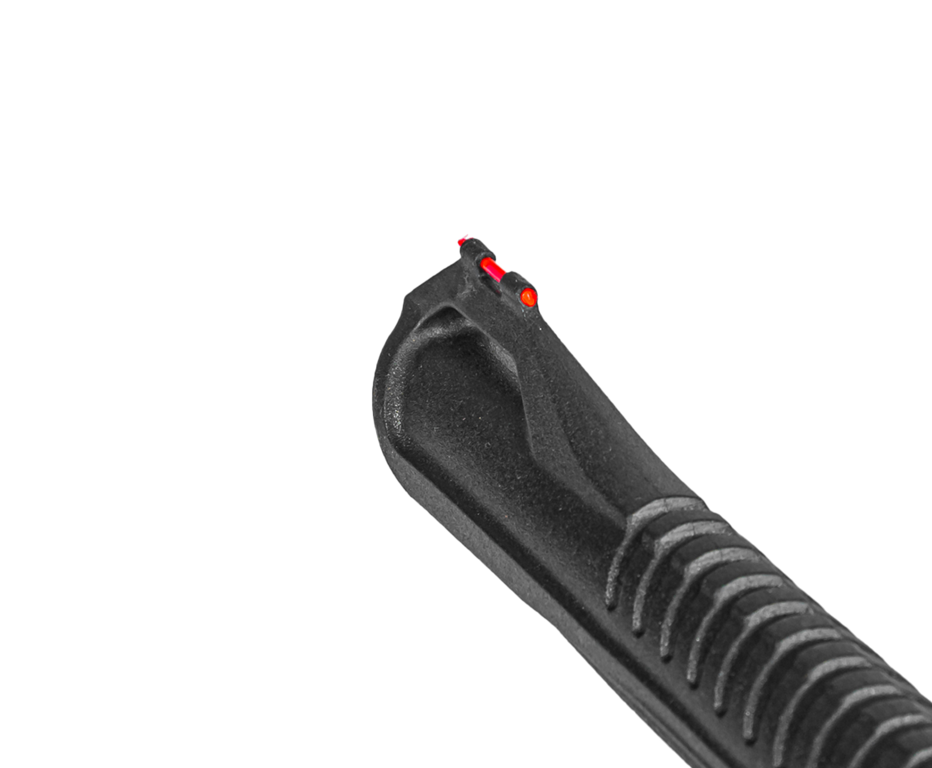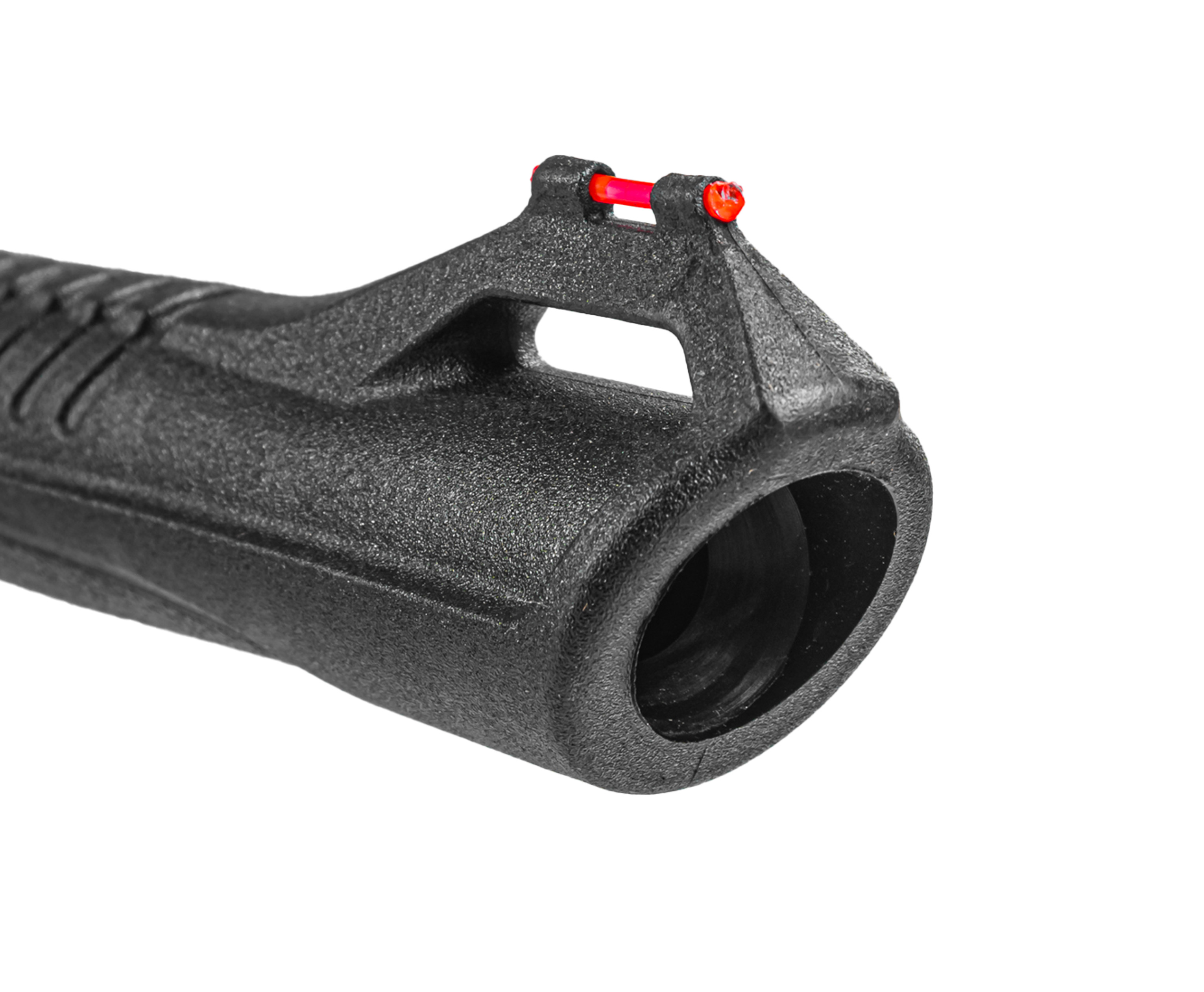 Ствол выполнен из качественной стали и обладает увеличенным эксплуатационным ресурсом. Со стороны дульной части предусмотрена накладка, упрощающая взведение оружия. Она же совмещена с мушкой, оформленной светоотражающей вставкой из фибергласса - с противоположной казенной части присутствует целик с регулировкой по двум осям.