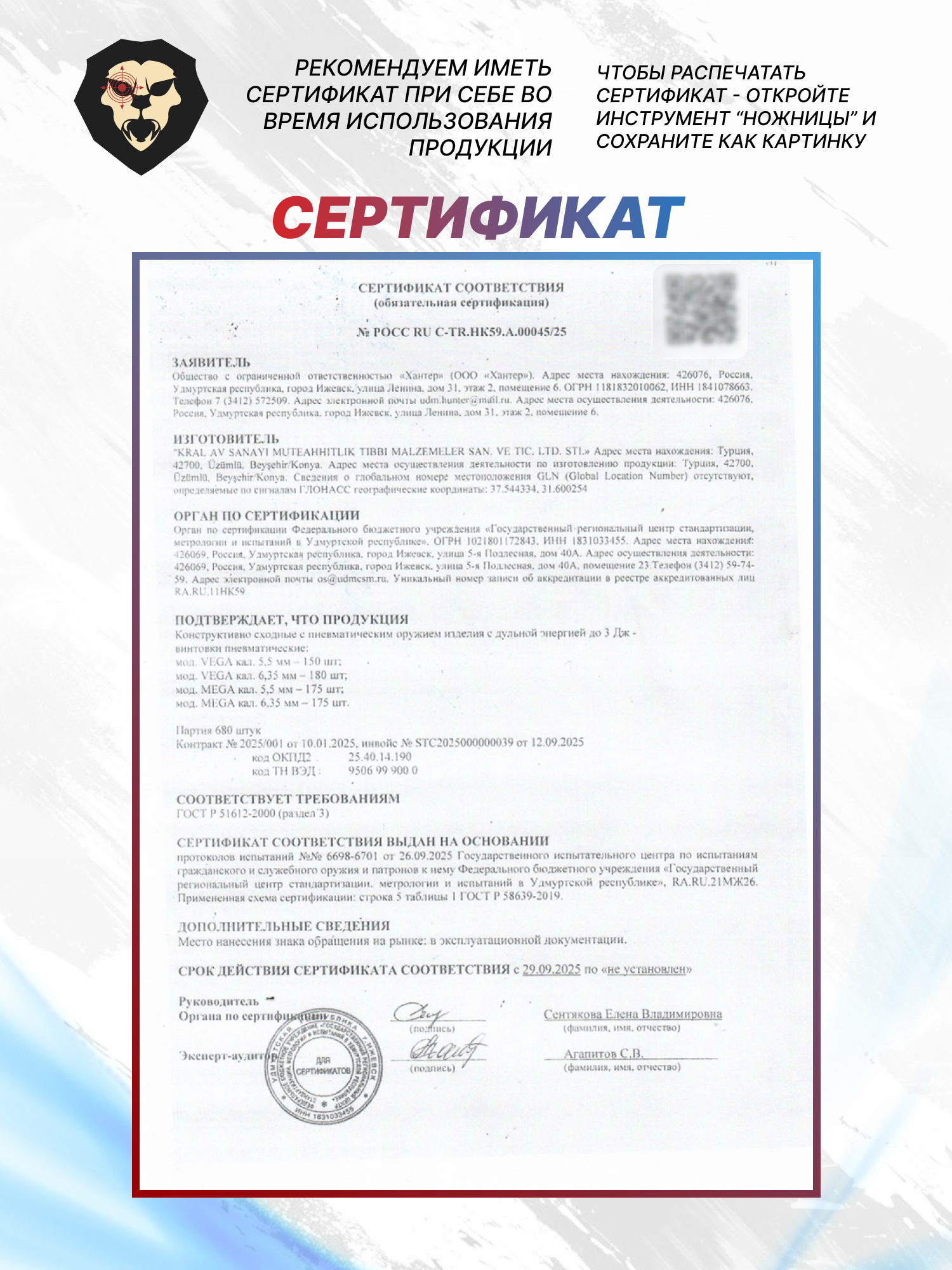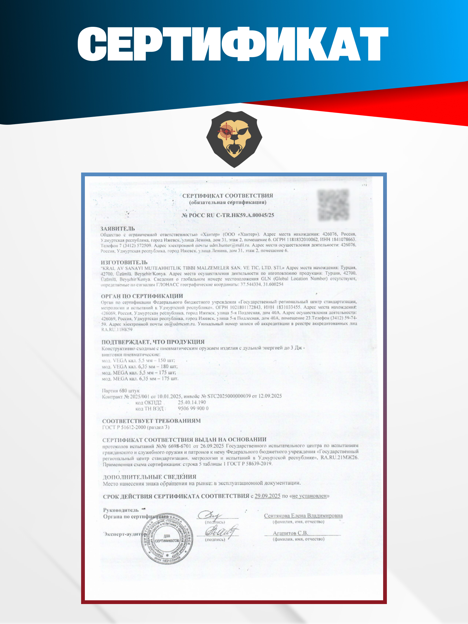 | Комплектация | Винтовка, упаковка, краткая документация, копия сертификата (по запросу покупателя) |