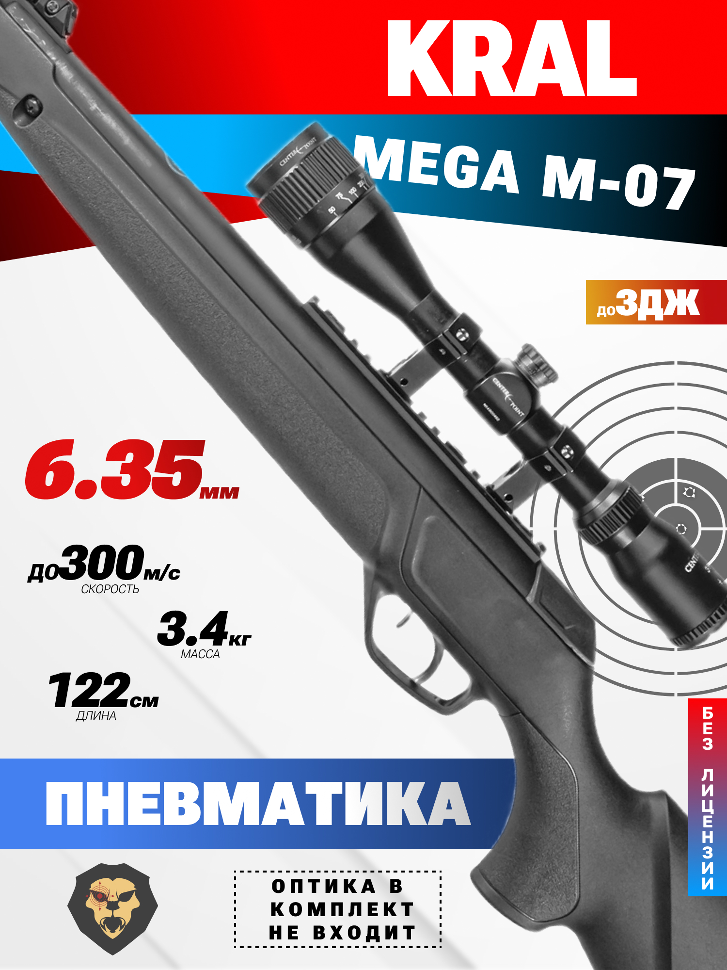 Артикул производителя Пневматическая винтовка Kral Mega M-07 6.35 мм (пластик) по низкой цене 18750 руб. Модель со штрихкодом производителя Вы можете оплатить наложенным платежем с доставкой или в отделении транспортной компании (ПЭК, СДЭК, Boxberry). Ваш заказ со штрихкодом 2000000179711 забрать на почте с оплатой при получении в любой части Российской Федерации.