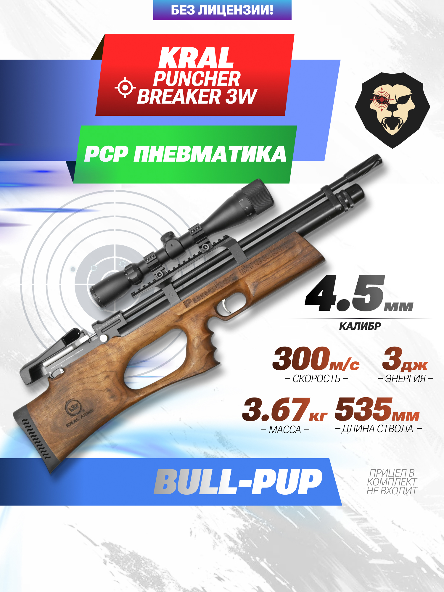 Артикул производителя Пневматическая винтовка Kral Puncher Breaker 3W PCP 4.5 мм (орех, Bull-Pup) по низкой цене 51500 руб. Модель со штрихкодом производителя Вы можете оплатить наложенным платежем с доставкой или в отделении транспортной компании (ПЭК, СДЭК, Boxberry). Ваш заказ со штрихкодом 2000000037820 забрать на почте с оплатой при получении в любой части Российской Федерации.