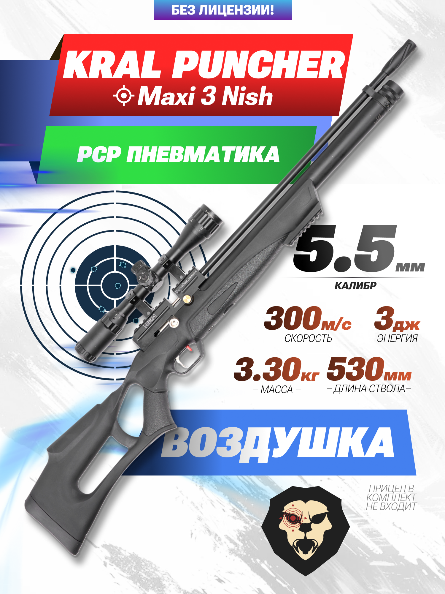 Артикул производителя Пневматическая винтовка Kral Puncher Maxi 3 Nish 5.5 мм (пластик) по низкой цене 37700 руб. Модель со штрихкодом производителя Вы можете оплатить наложенным платежем с доставкой или в отделении транспортной компании (ПЭК, СДЭК, Boxberry). Ваш заказ со штрихкодом 2000000114187 забрать на почте с оплатой при получении в любой части Российской Федерации.