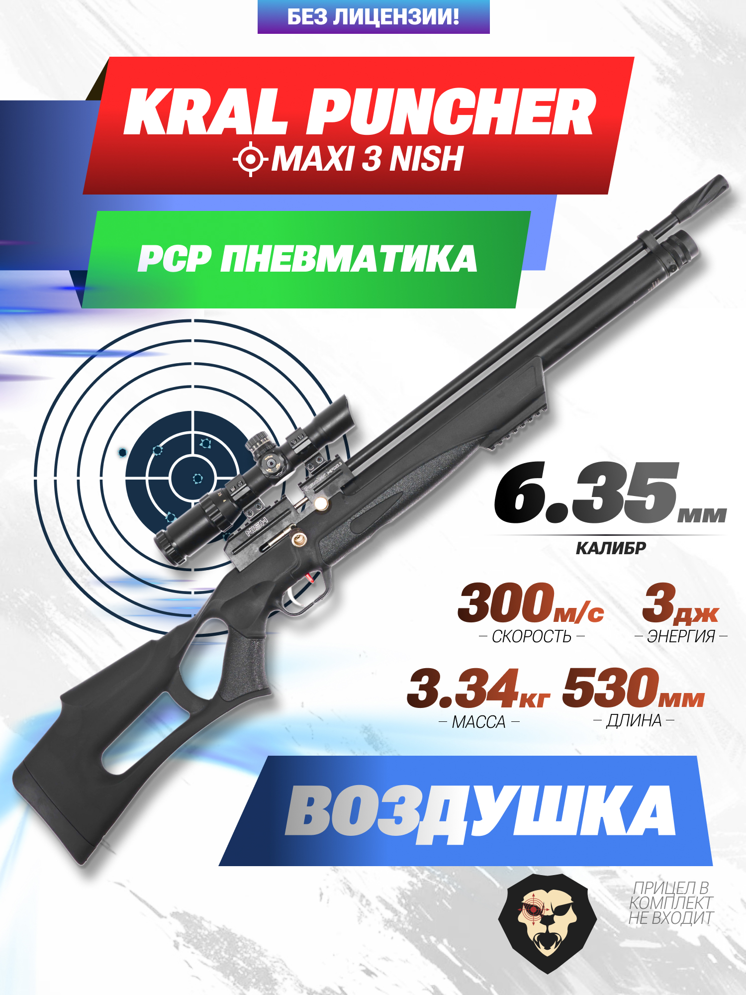 Пневматическая винтовка Kral Puncher Maxi 3 Nish 6.35 мм (пластик) купить в интернет-магазине Popadiv10.