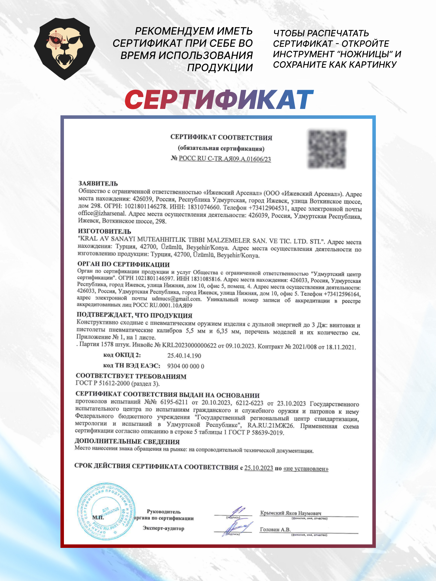 | Комплектация | Винтовка, магазин, упаковка, заправочный штуцер, краткая документация, копия сертификата (по запросу покупателя) |