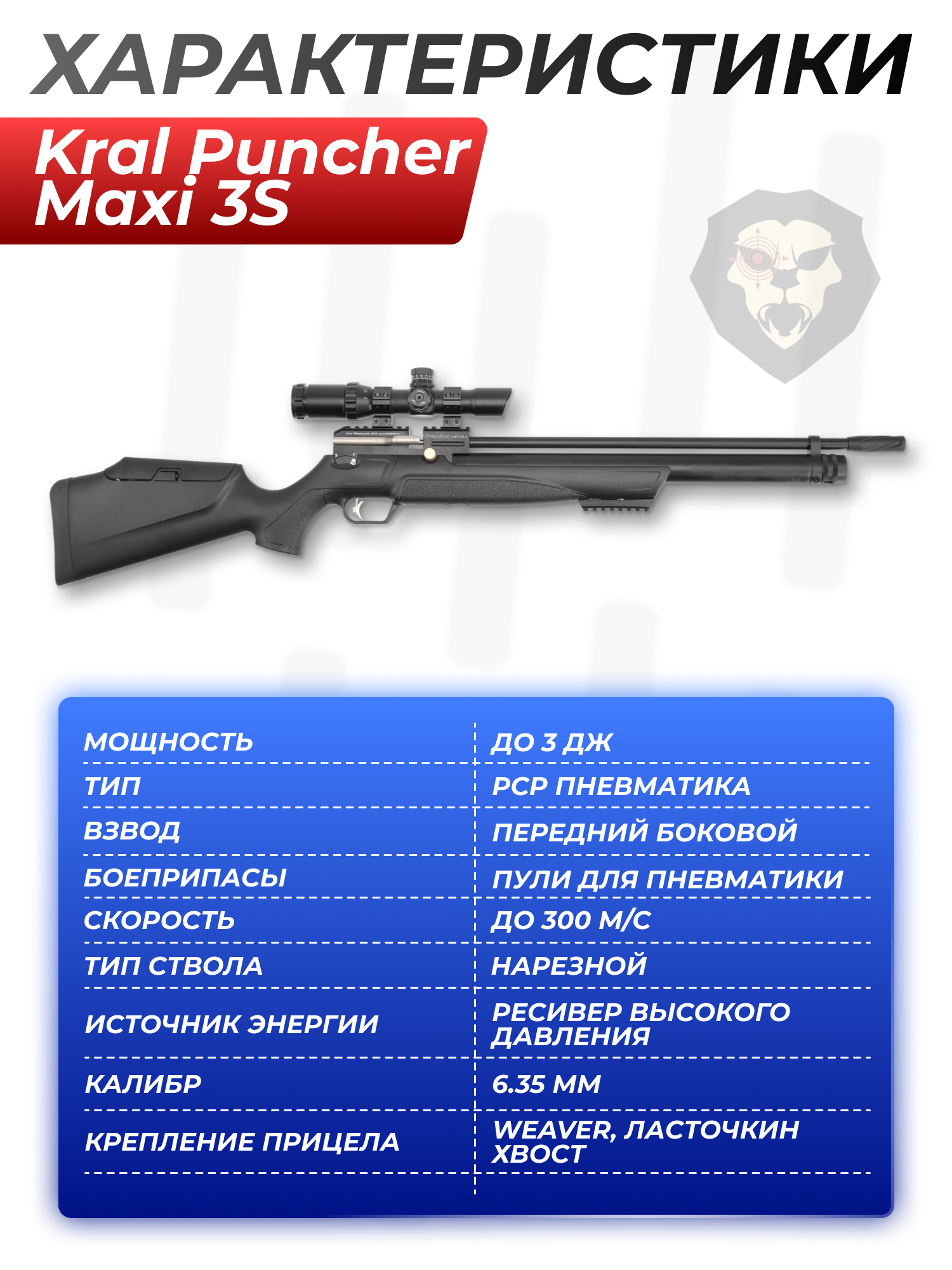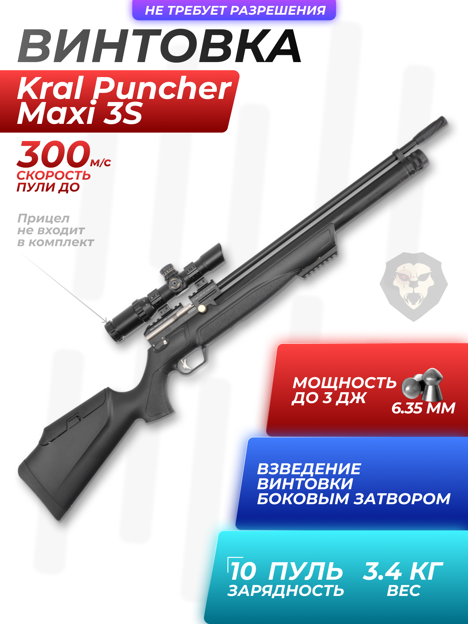 Пневматическая винтовка Kral Puncher Maxi 3S 6.35 мм (пластик) купить в интернет-магазине Popadiv10.