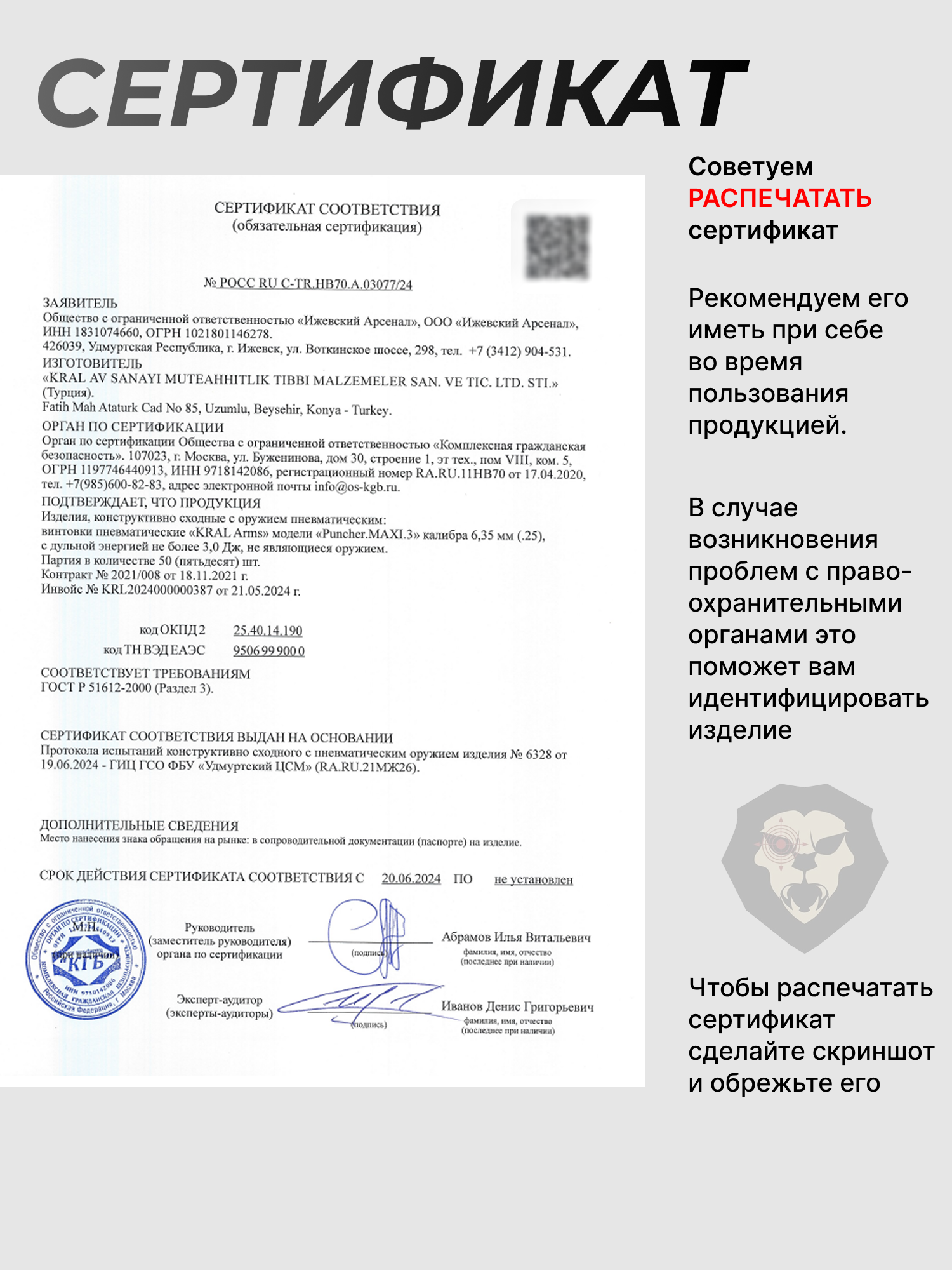 Информация о товаре "Пневматическая винтовка Kral Puncher Maxi 3S 6.35 мм (пластик)" носит ознакомительный характер, и не является публичной офертой, определяемой положениями Статьи 437 Гражданского кодекса Российской Федерации, характеристики, внешний вид, цвет и комплектация могут быть изменены производителем без уведомления.
