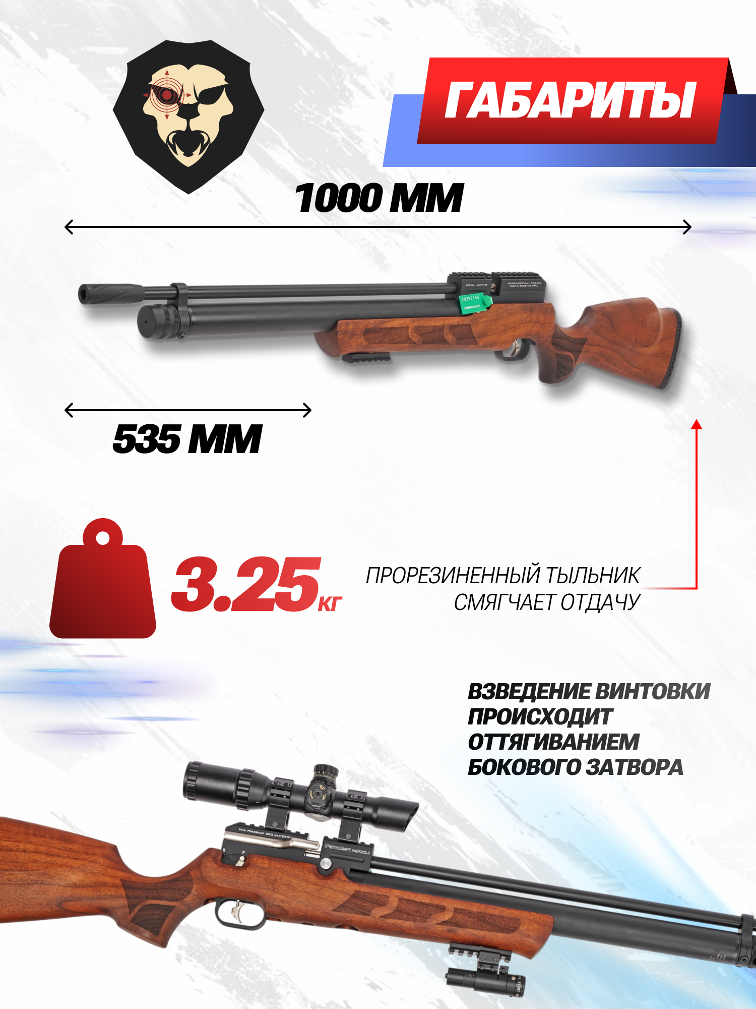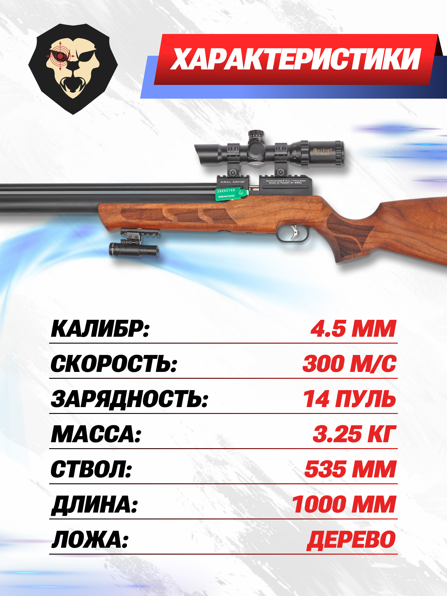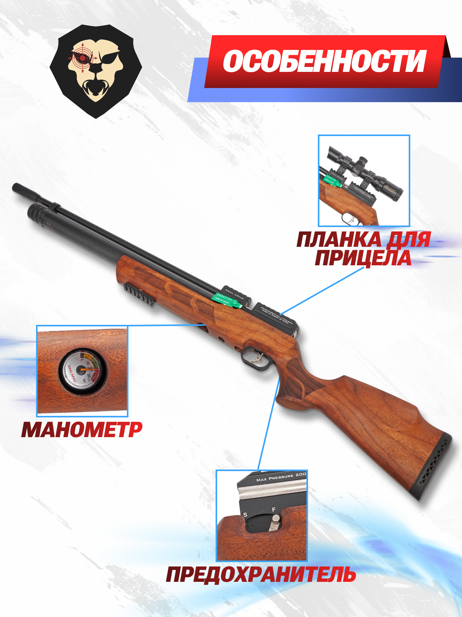 Турецкая компания Крал Армс продолжает укреплять свои позиции в нише пневматического оружия, предлагая модели, которые сочетают доступность и качество исполнения. На этом фоне ассортимент бренда доступен не только опытным, но и рядовым пользователям. Расширяя свою линейку образцов с предварительной закачкой воздуха, предприятие представило рассматриваемую пневматику.
