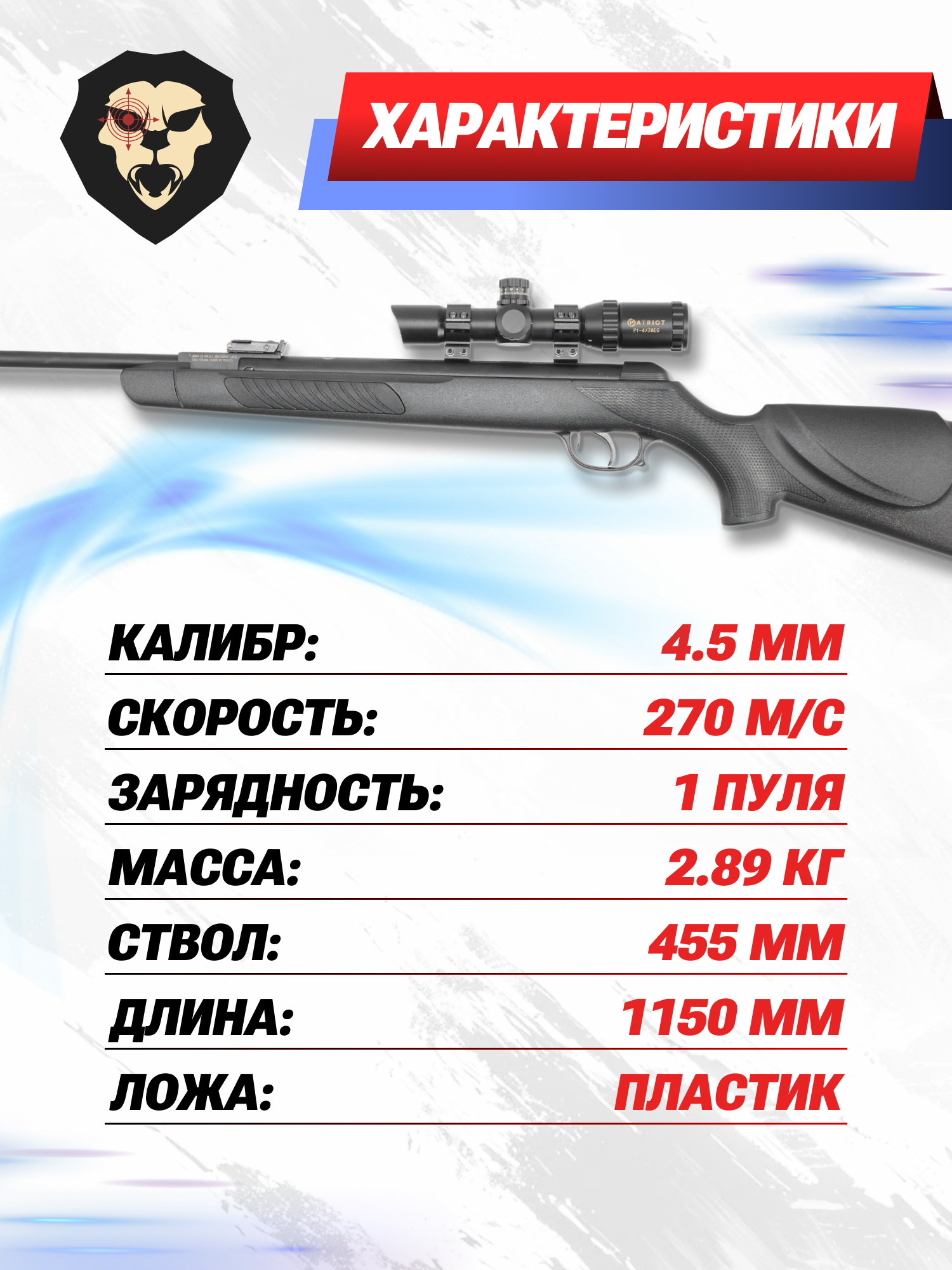 | Комплектация | Винтовка, упаковка, краткая документация, копия сертификата (по запросу покупателя) |