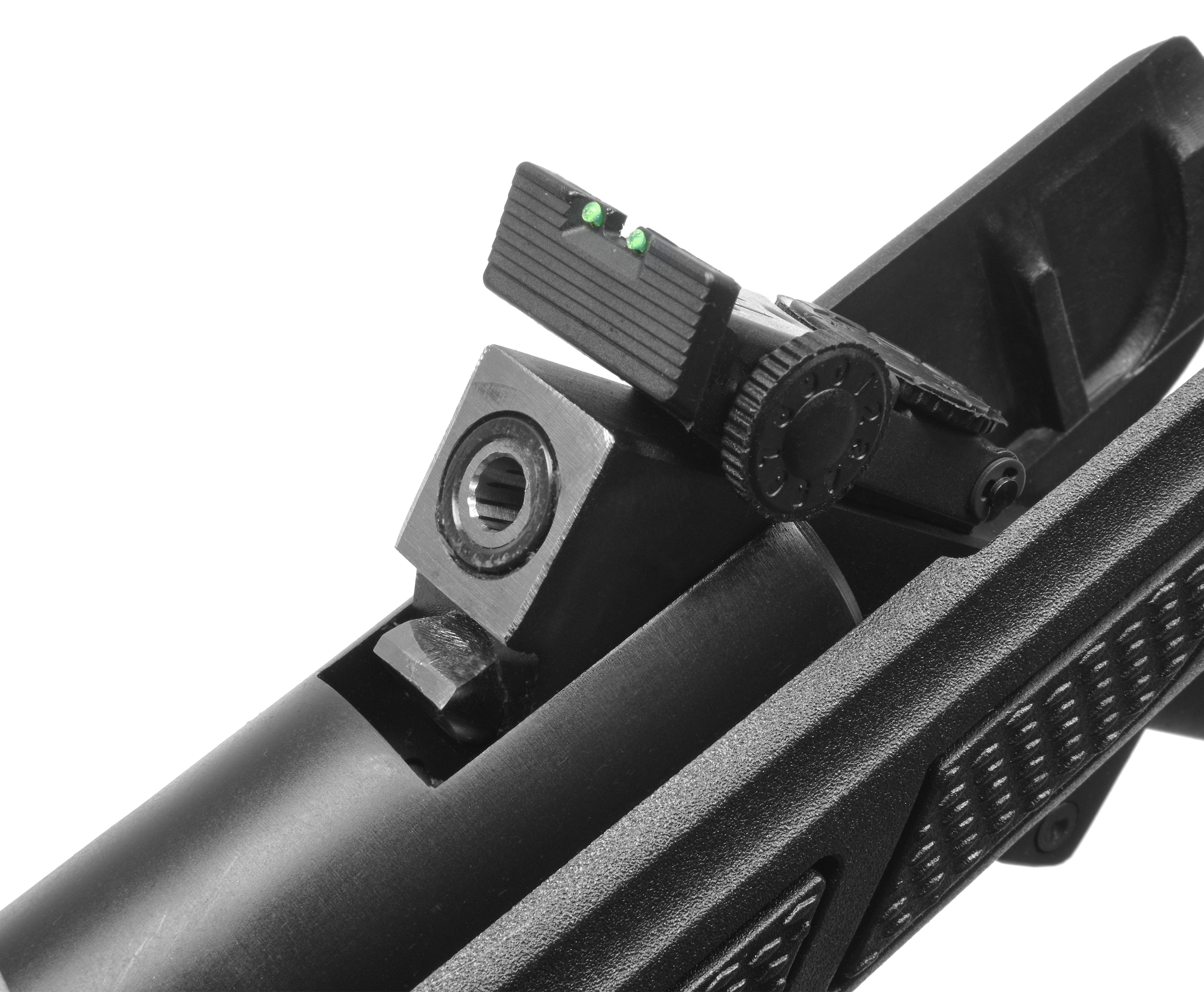Для наведения задействуются стандартные механические приспособления. По умолчанию доступна мушка и целик с функцией регулировки - элементы дополнены вставками из фибергласса, что делает их заметнее при недостаточном освещении. Вдобавок к этому допускается установка оптического прицела с использованием монтажных колец, совместимых с посадочной направляющей «Ласточкин хвост» 11 мм.