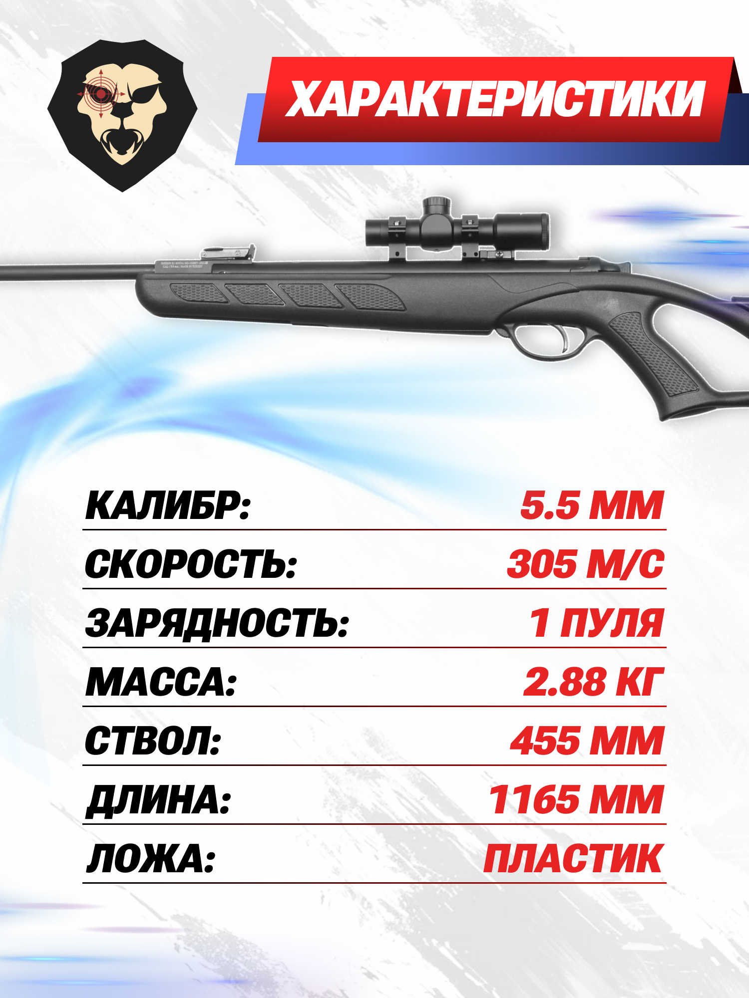В вариации для российского рынка винтовки обладают дульной энергией в пределах разрешенного показателя 3 Дж. Благодаря этой особенности каждый, кто достиг возраста совершеннолетия, сможет законно завладеть «воздушкой» без дополнительных ограничений. При этом модели для зарубежных стрелков способны развить скорость свыше 305 метров в секунду.