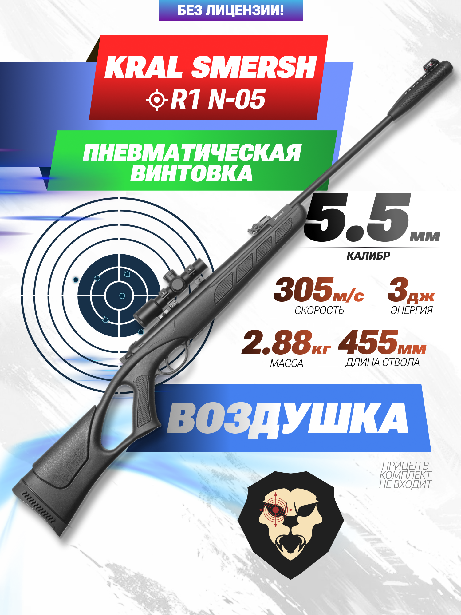 Пневматическая винтовка Kral Smersh R1 N-05 5.5 мм (пластик, 3 Дж) купить в интернет-магазине Popadiv10.