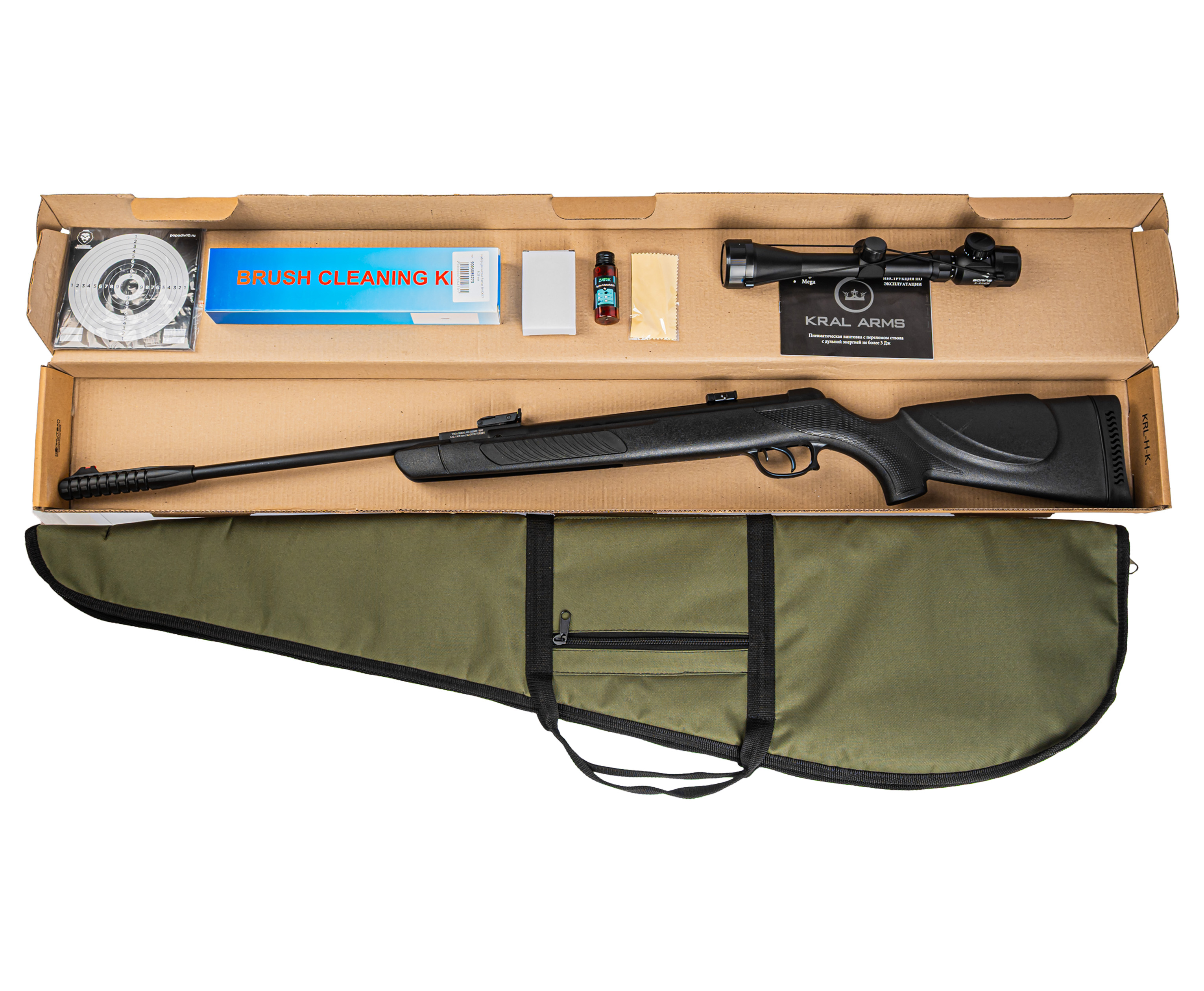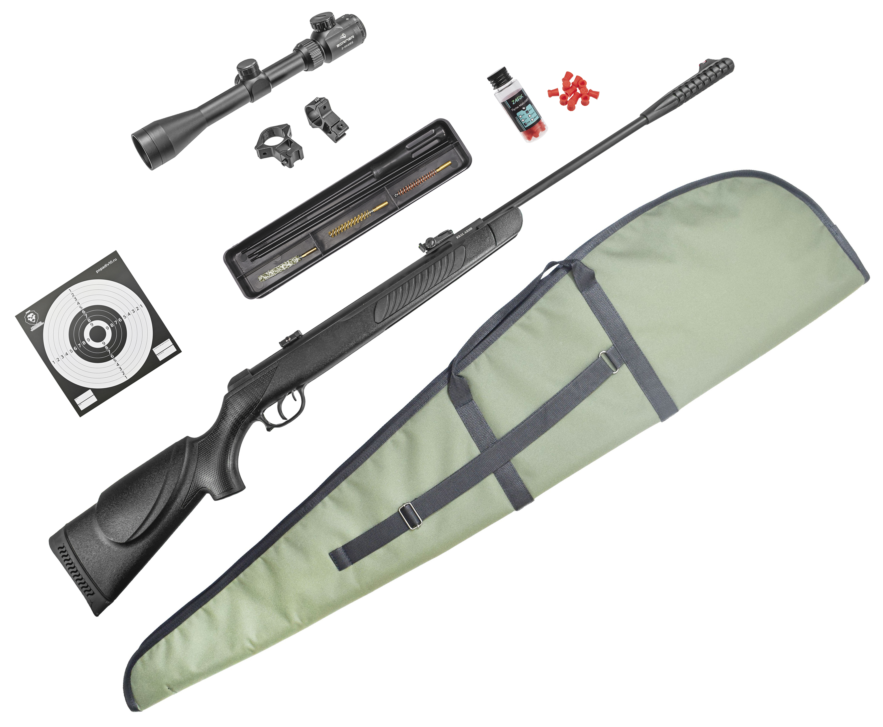 Пневматическая винтовка Kral Vega V-01 6.35 мм комплект Hunter №4 подарочный (прицел, кольца, чехол, набор для чистки, мишени, пули) купить в интернет-магазине Popadiv10.